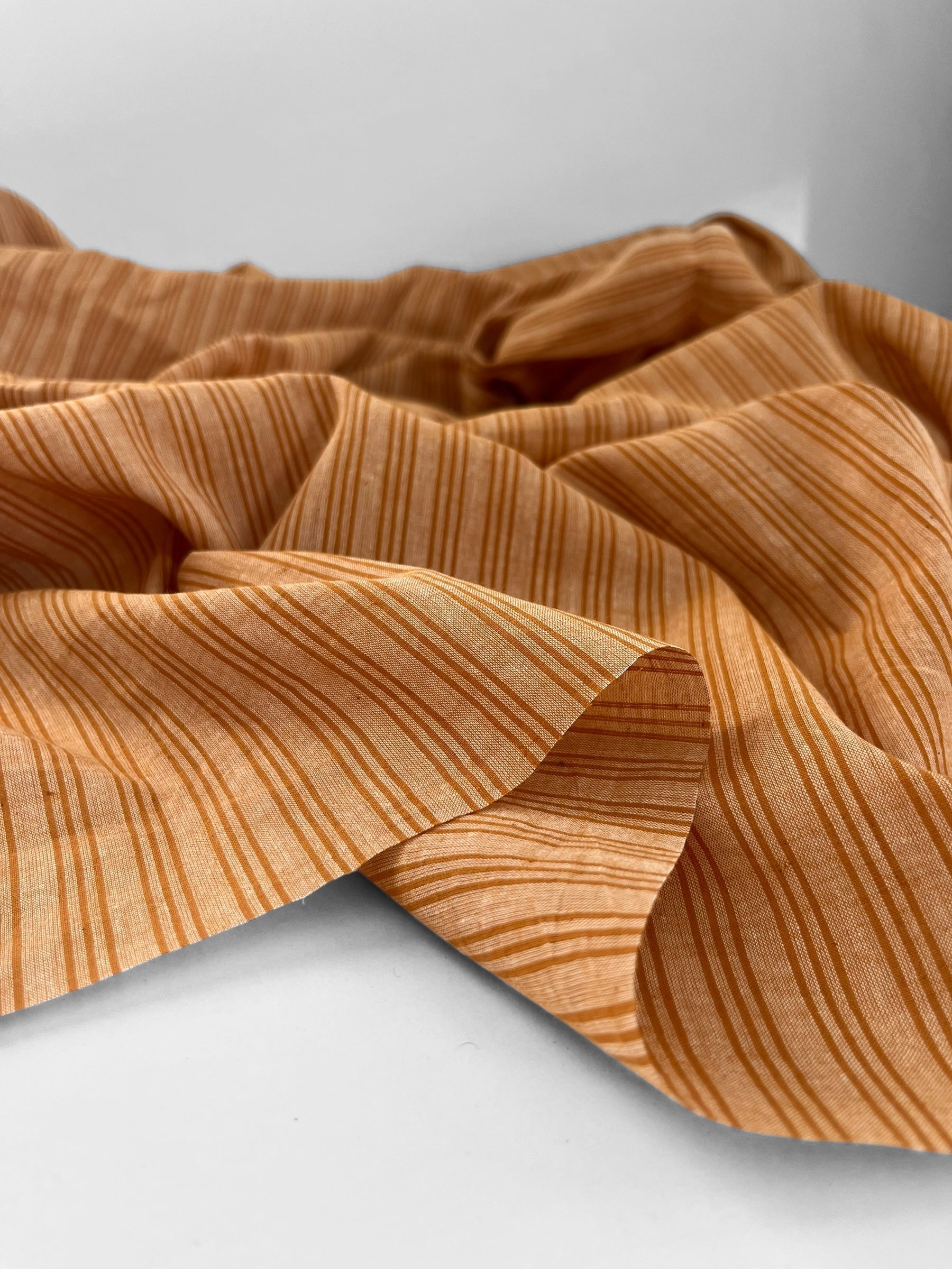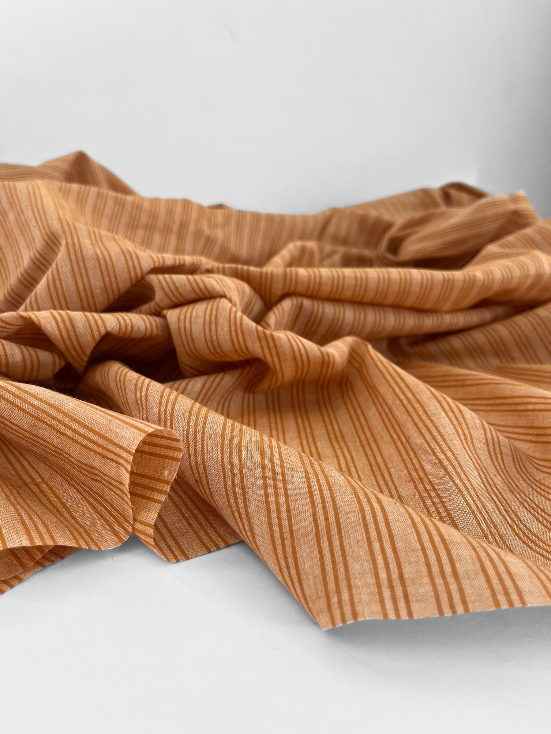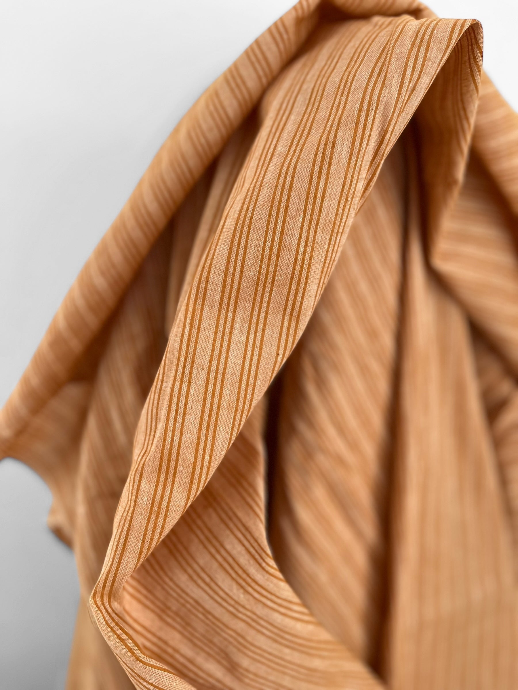 A beautifully soft premium cotton handwoven in rural Bengal, India, featuring a timeless yet unique stripy pattern. The colours include tonal orange.