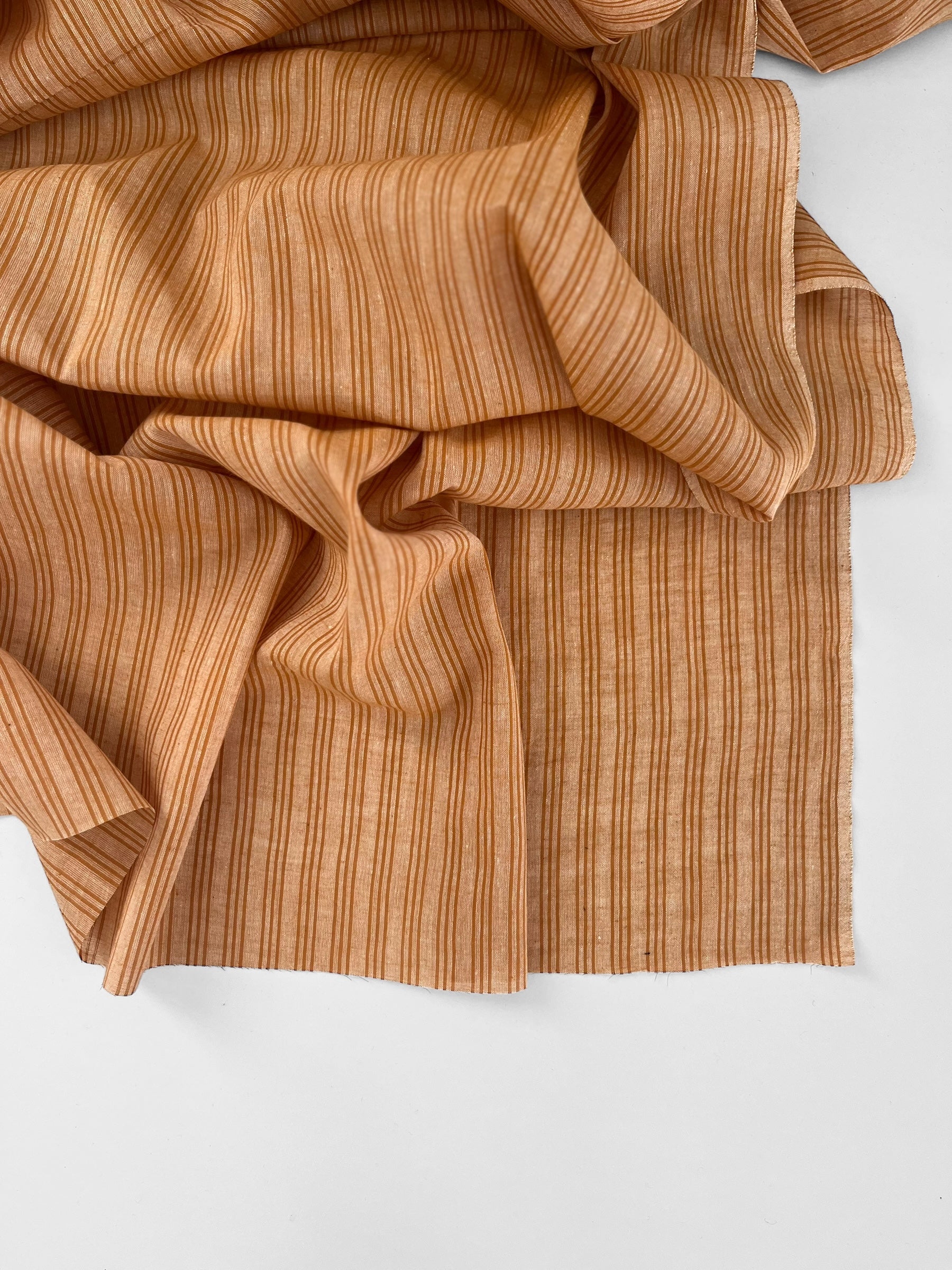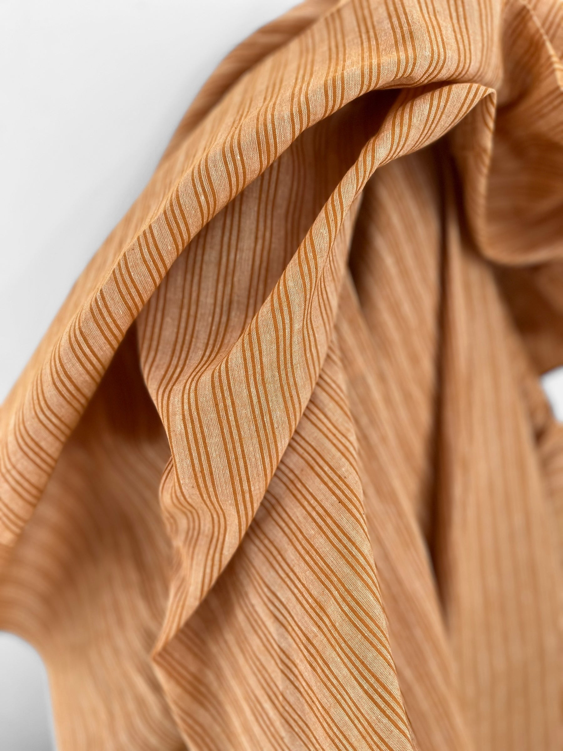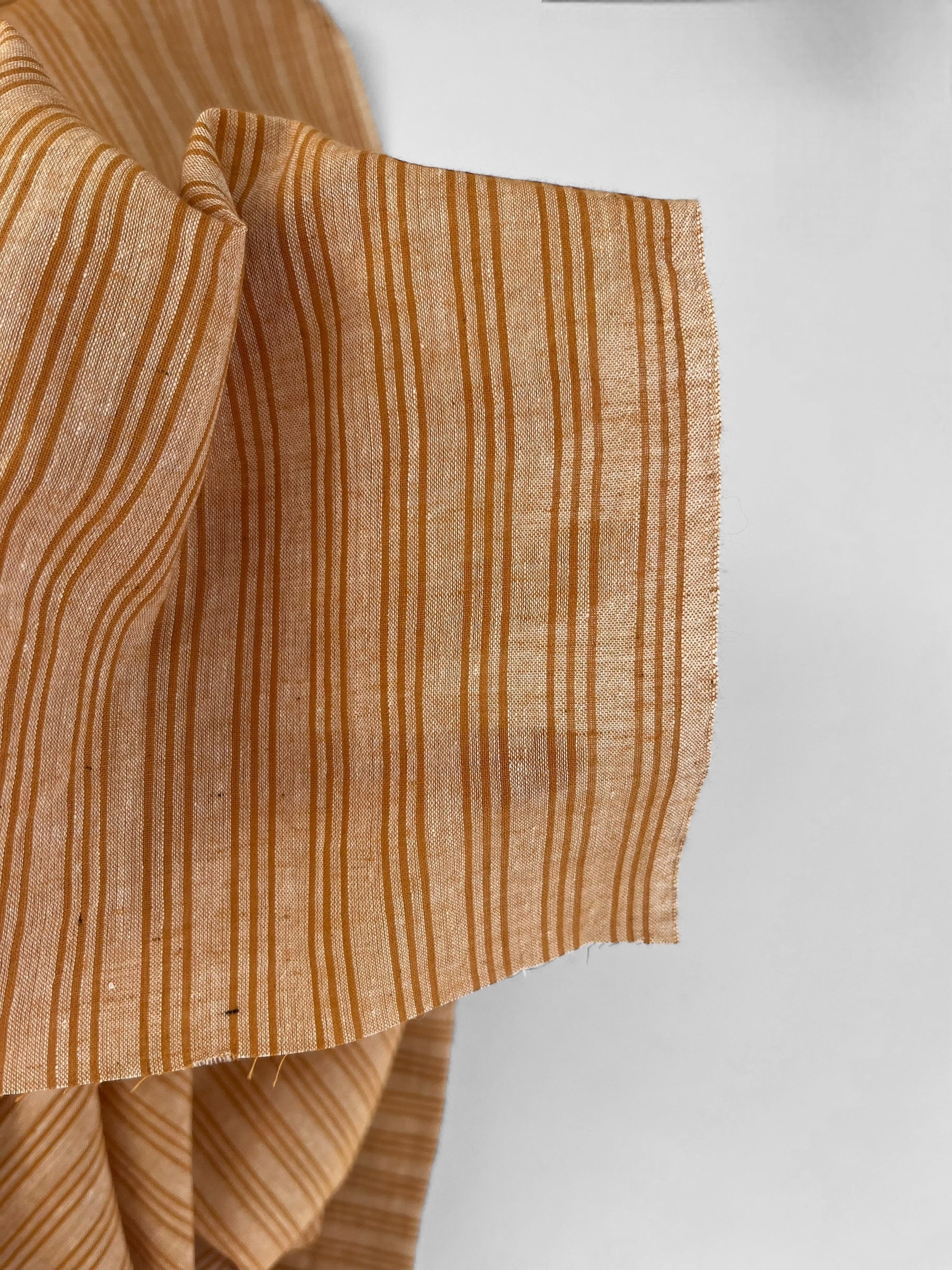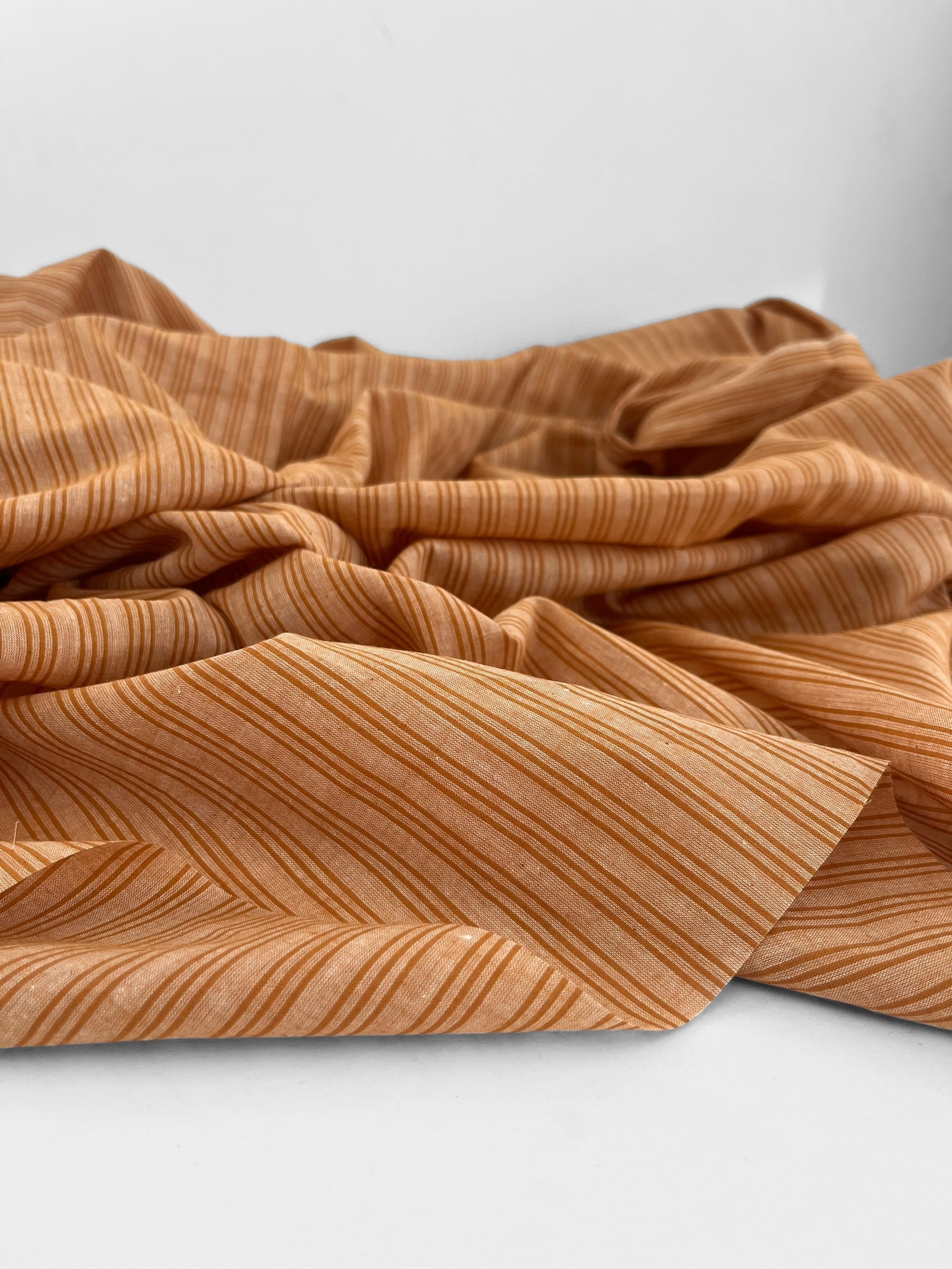 A beautifully soft premium cotton handwoven in rural Bengal, India, featuring a timeless yet unique stripy pattern. The colours include tonal orange.