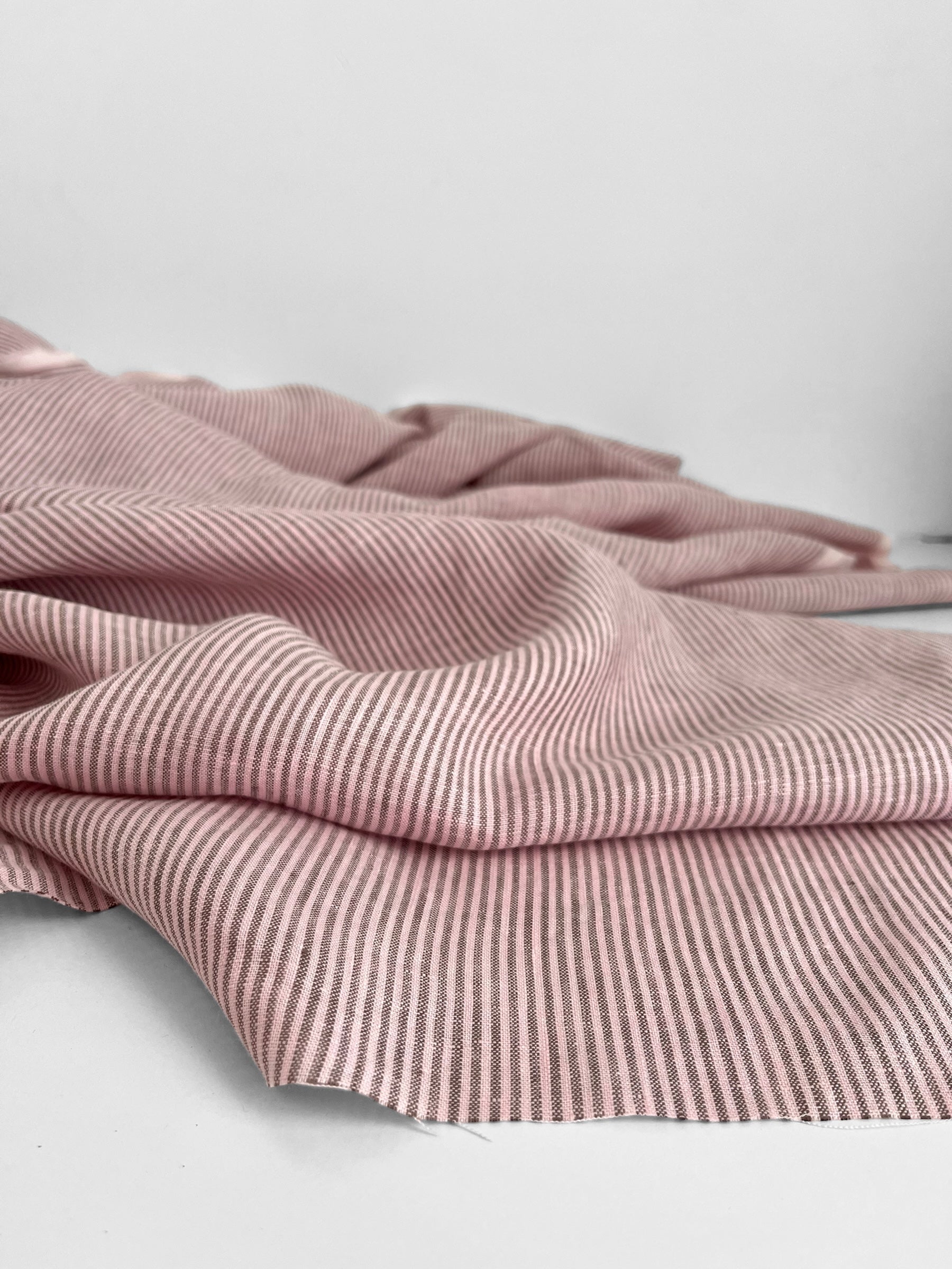 Pure yarn dyed linen with a beautiful smooth texture, sandwashed at the mill for softness. Colours include blush pink and mid brown.