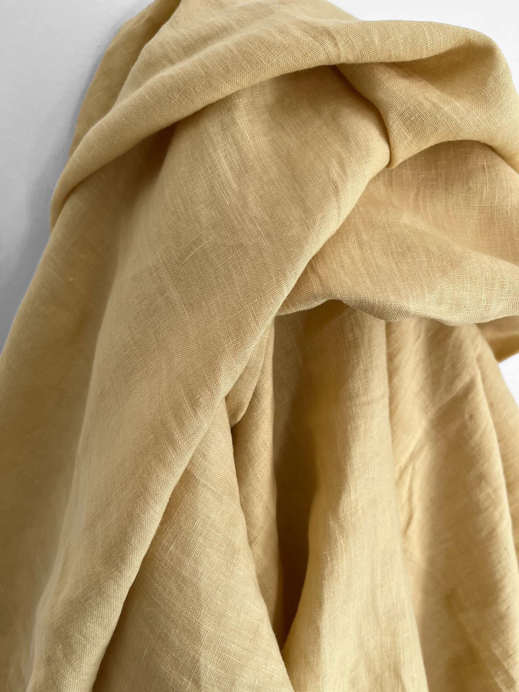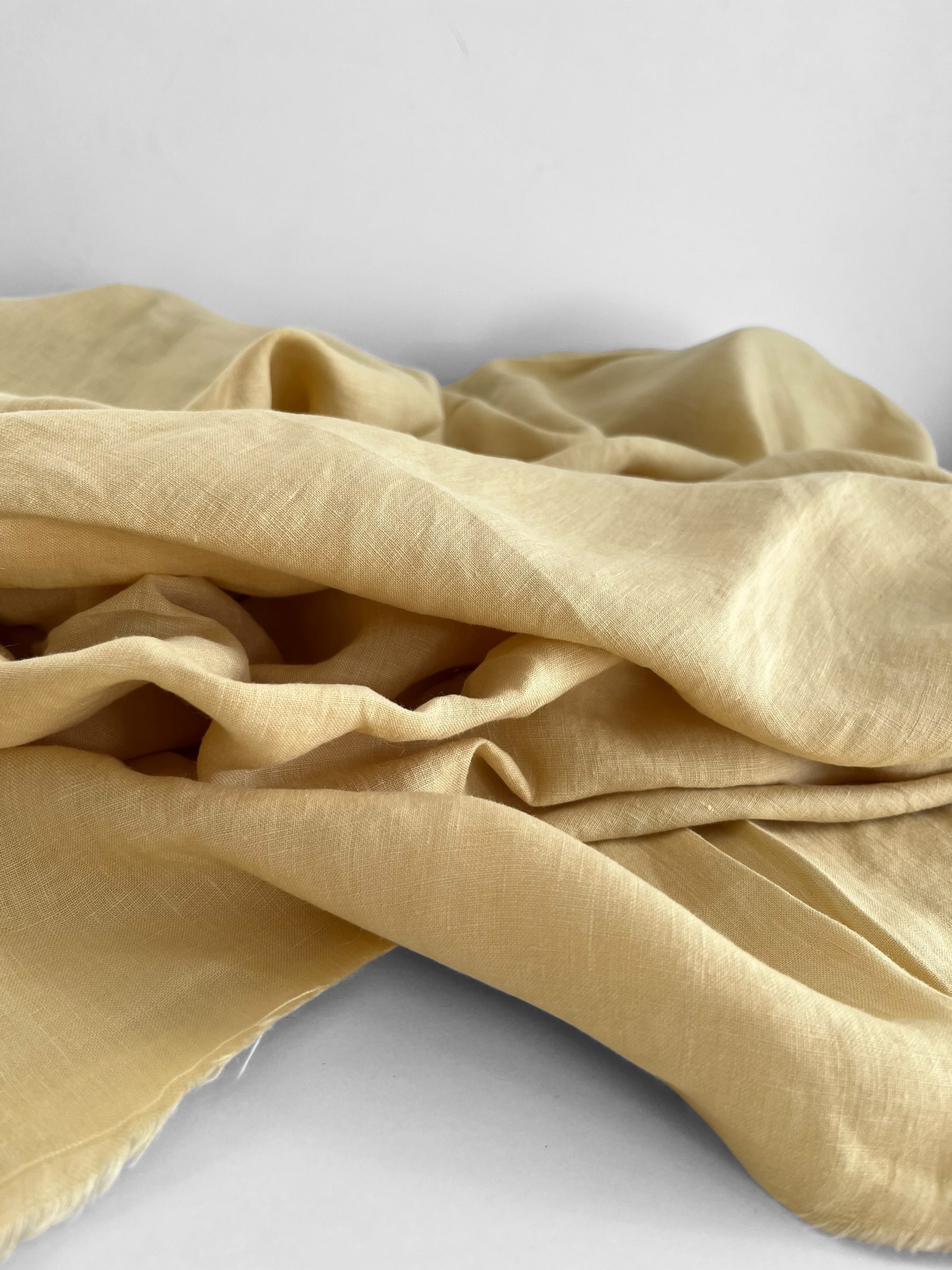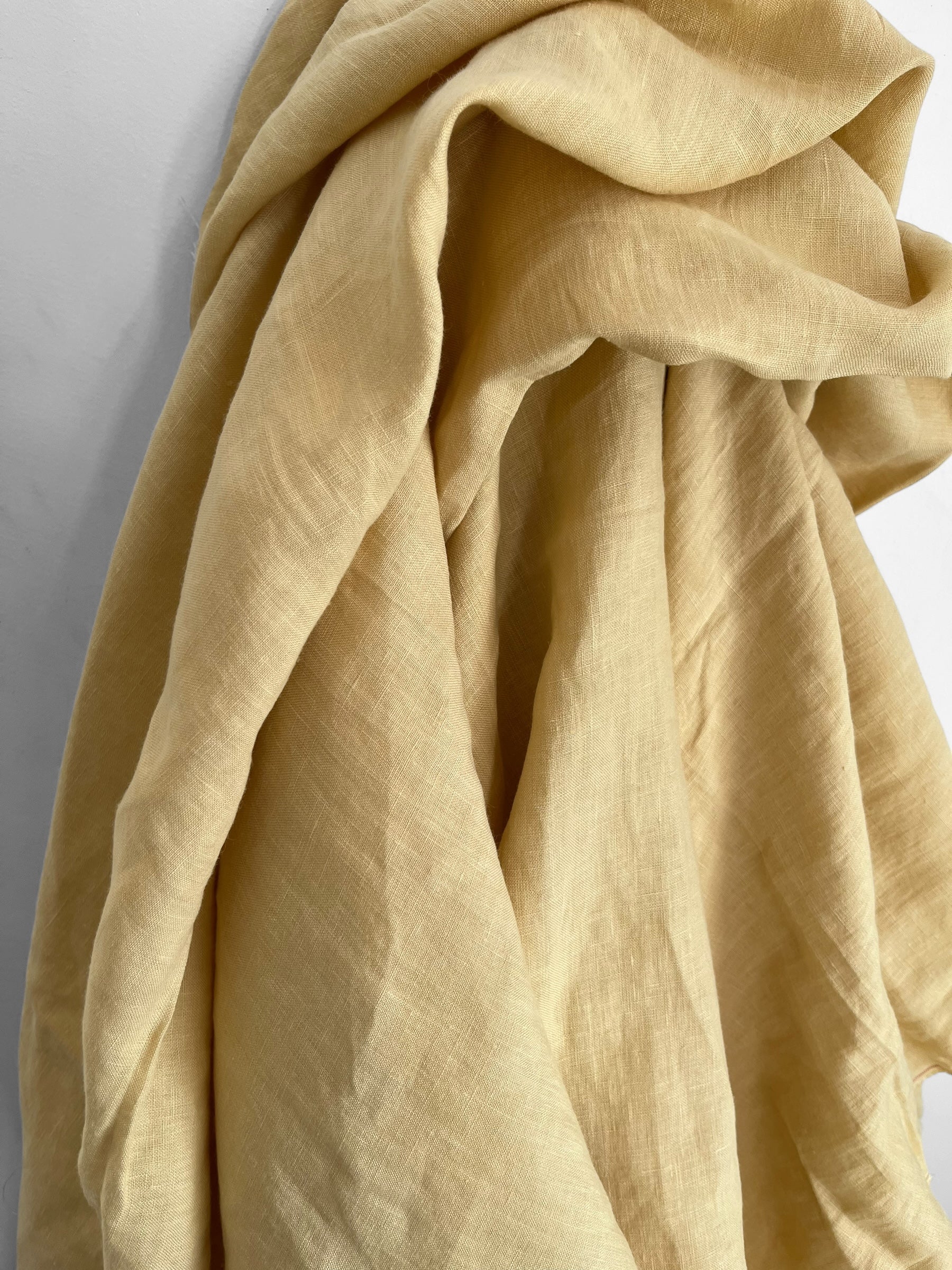 Pure European flax linen, stonewashed at the mill giving it softness and a relaxed texture for effortless elegance. Butter is a light muted yellow colour.