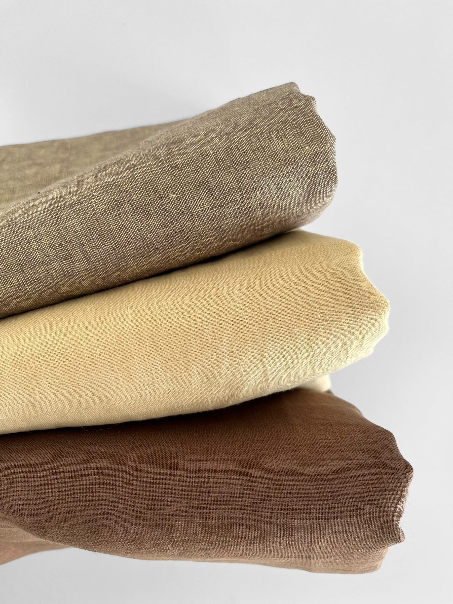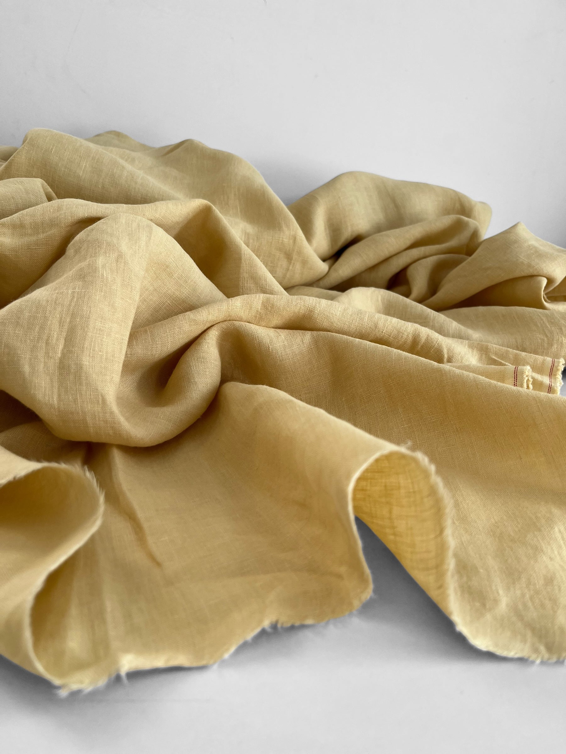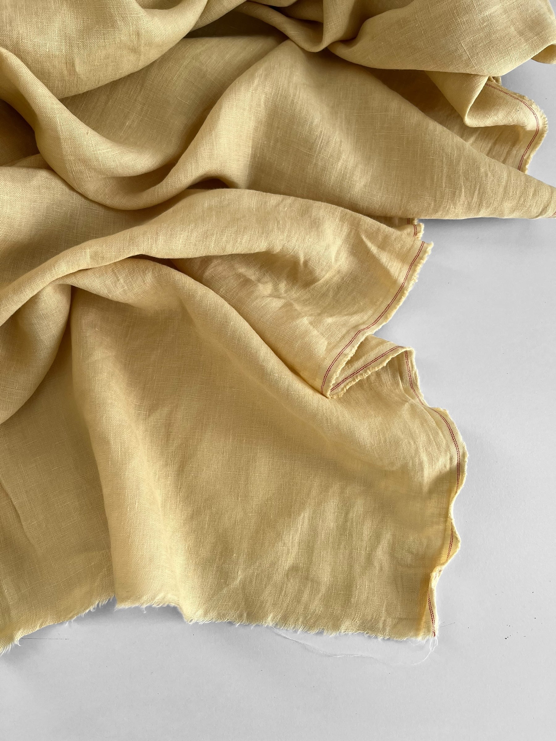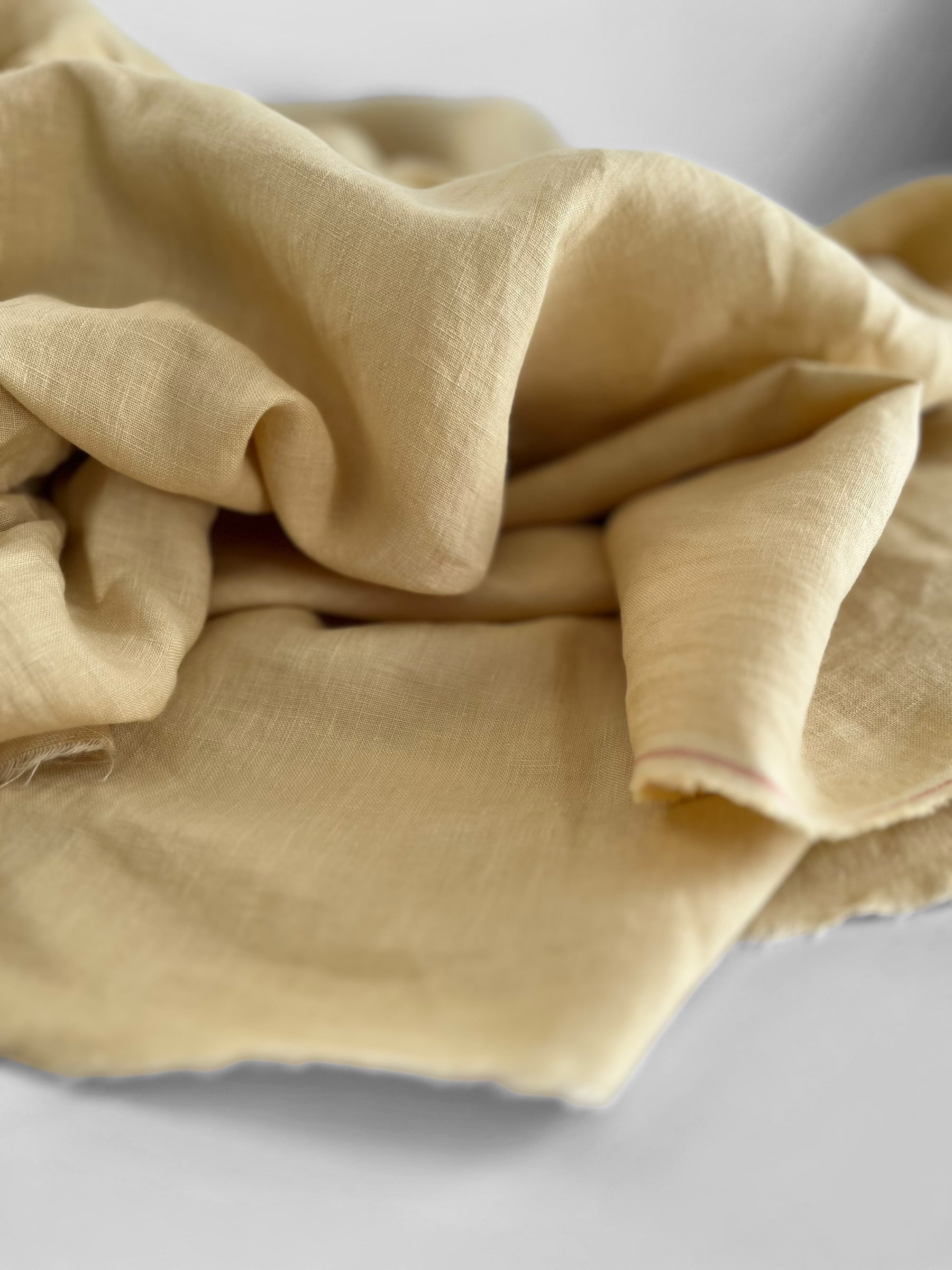 Pure European flax linen, stonewashed at the mill giving it softness and a relaxed texture for effortless elegance. Butter is a light muted yellow colour.