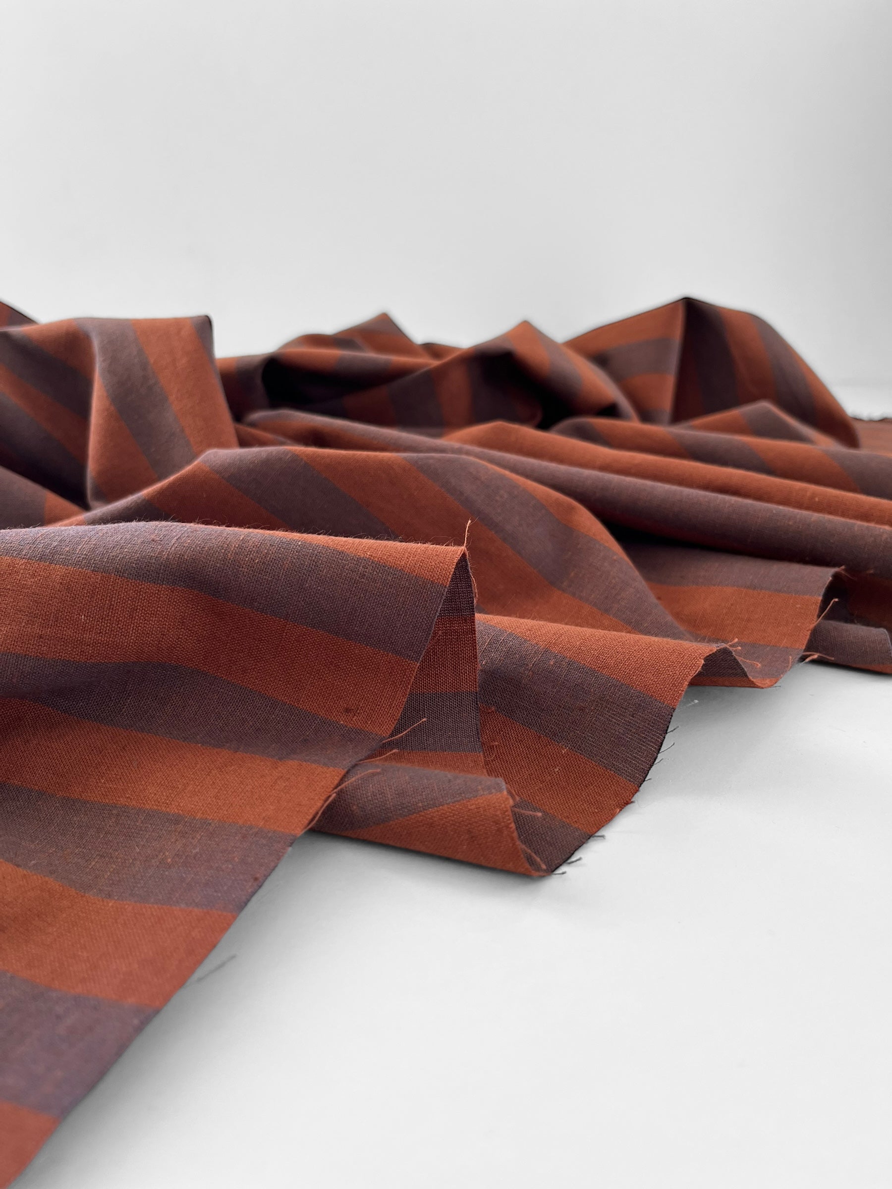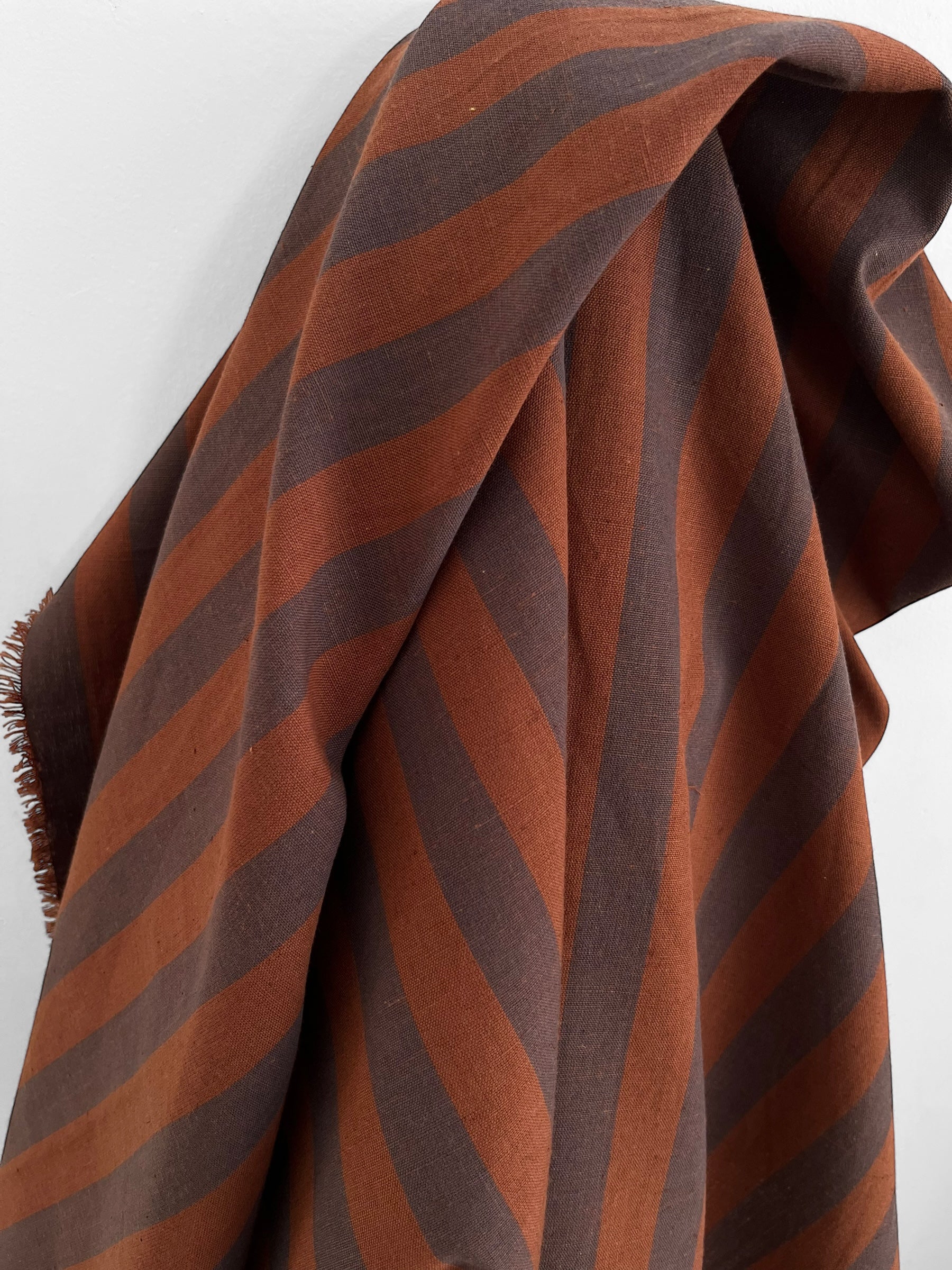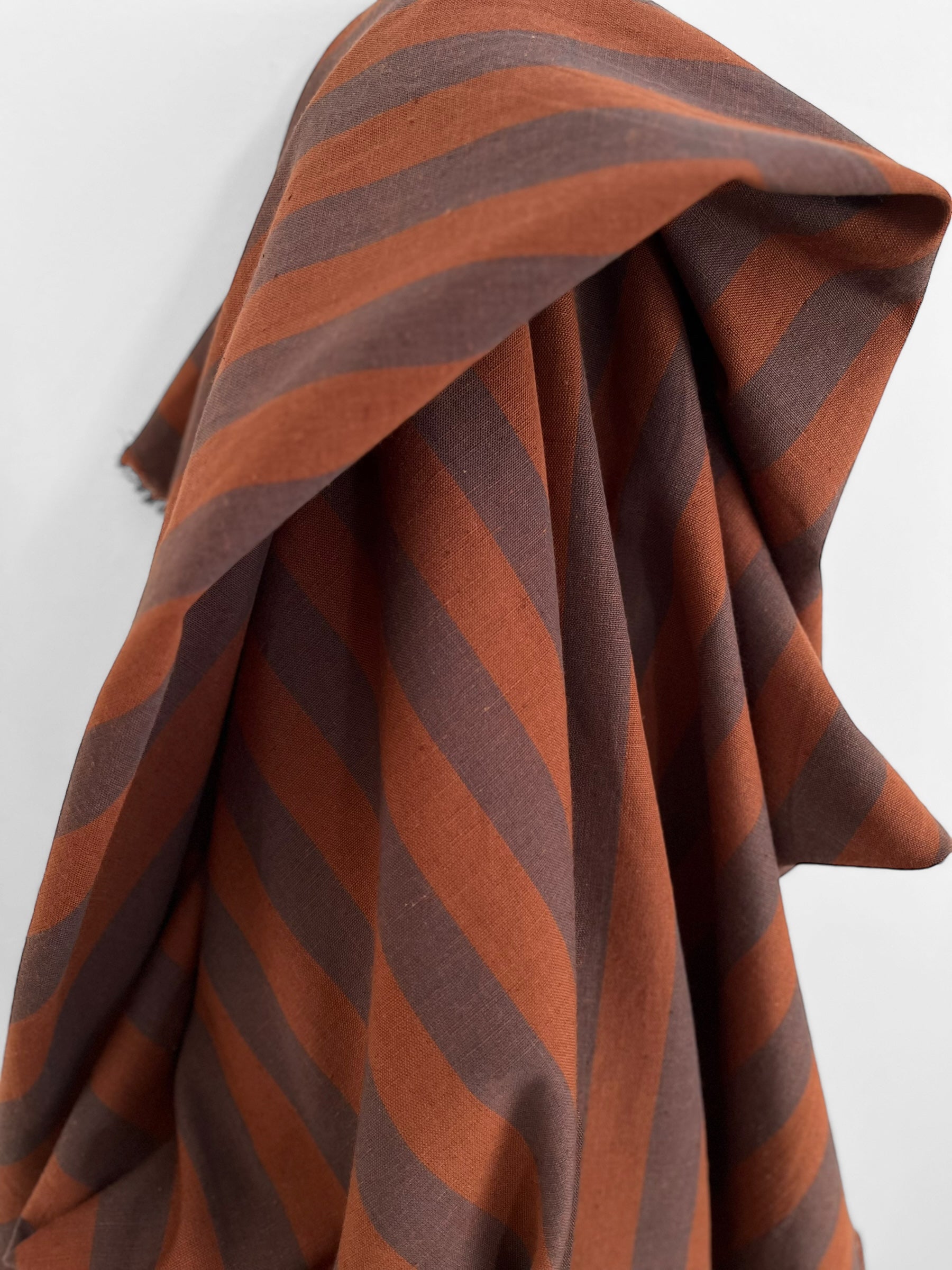 A cosy wide stripe in tones of chestnut and cool dark brown by the iconic Merchant & Mills.
