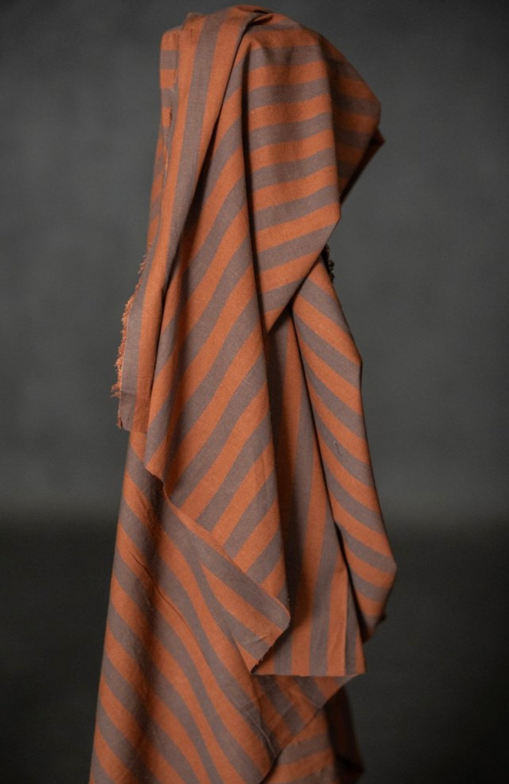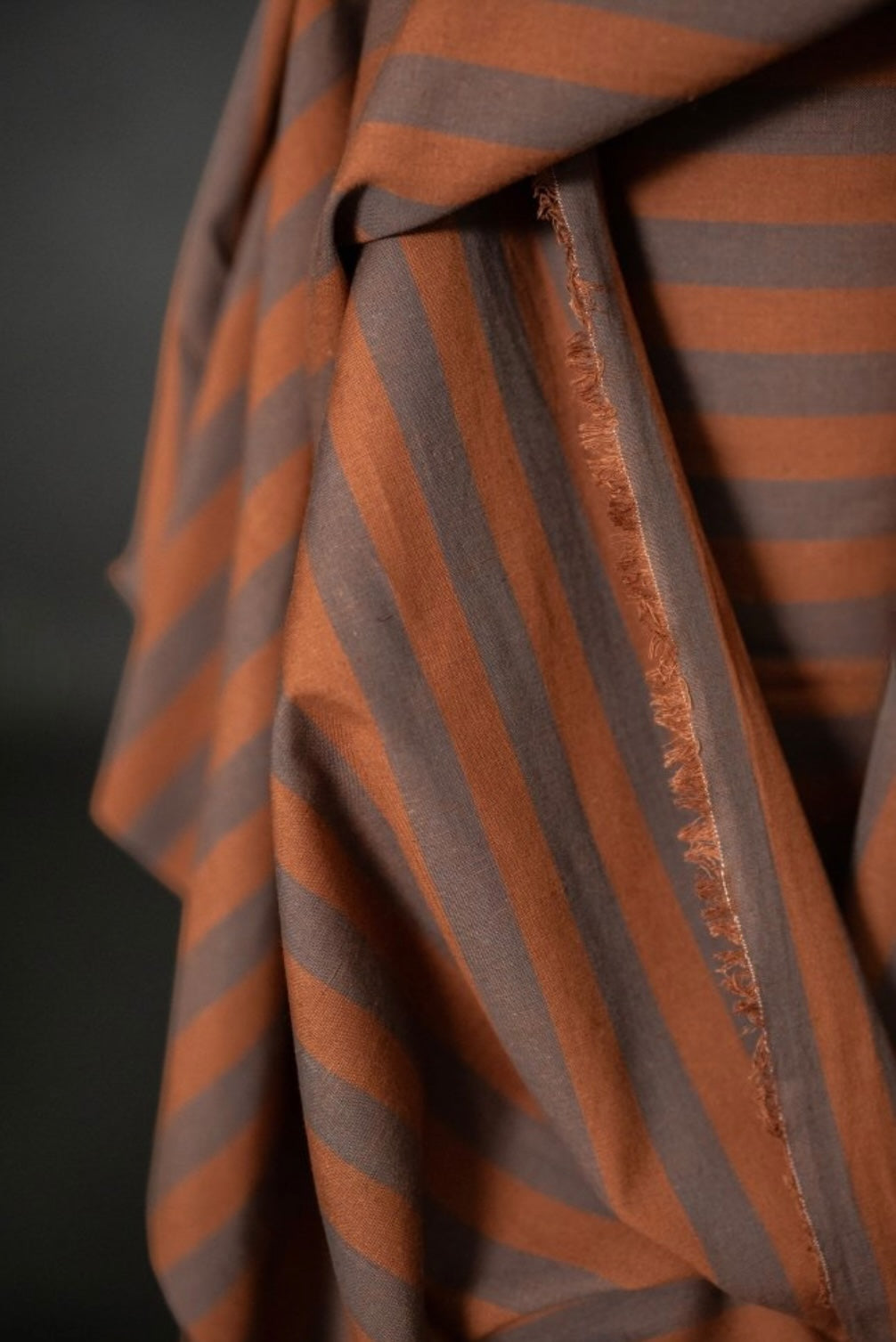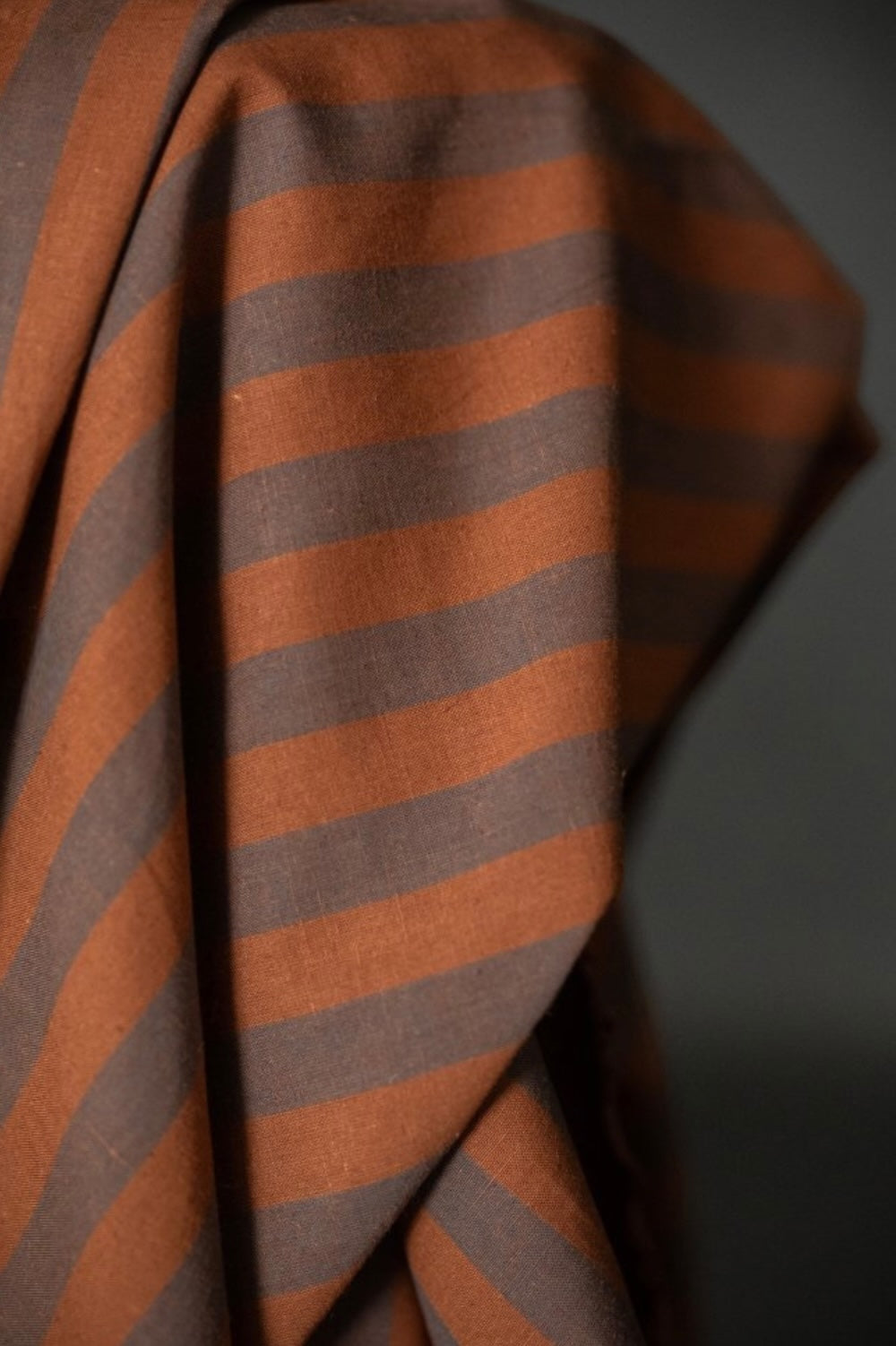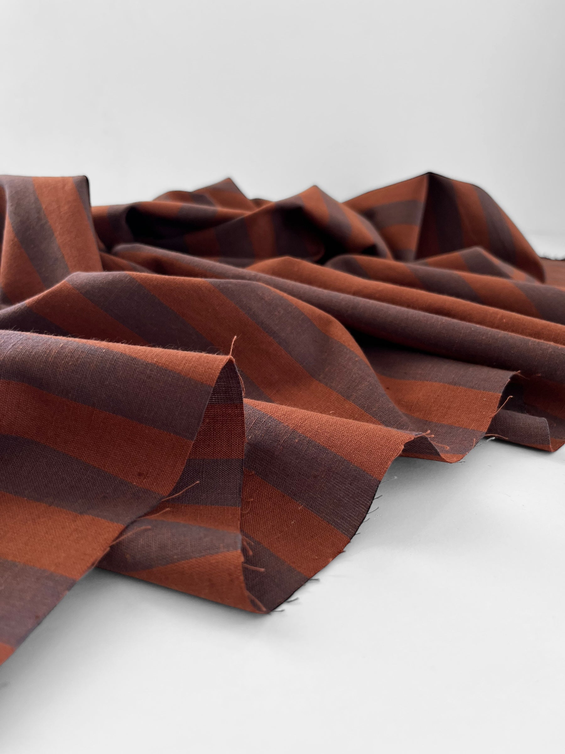 A cosy wide stripe in tones of chestnut and cool dark brown by the iconic Merchant & Mills.