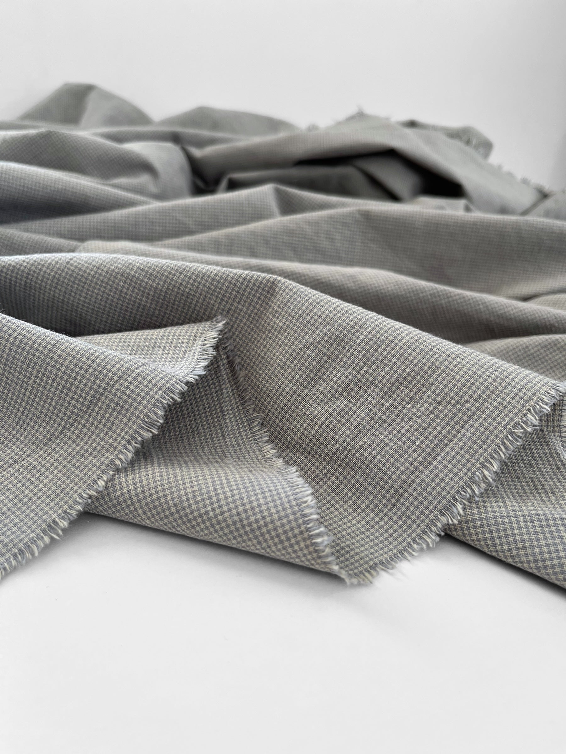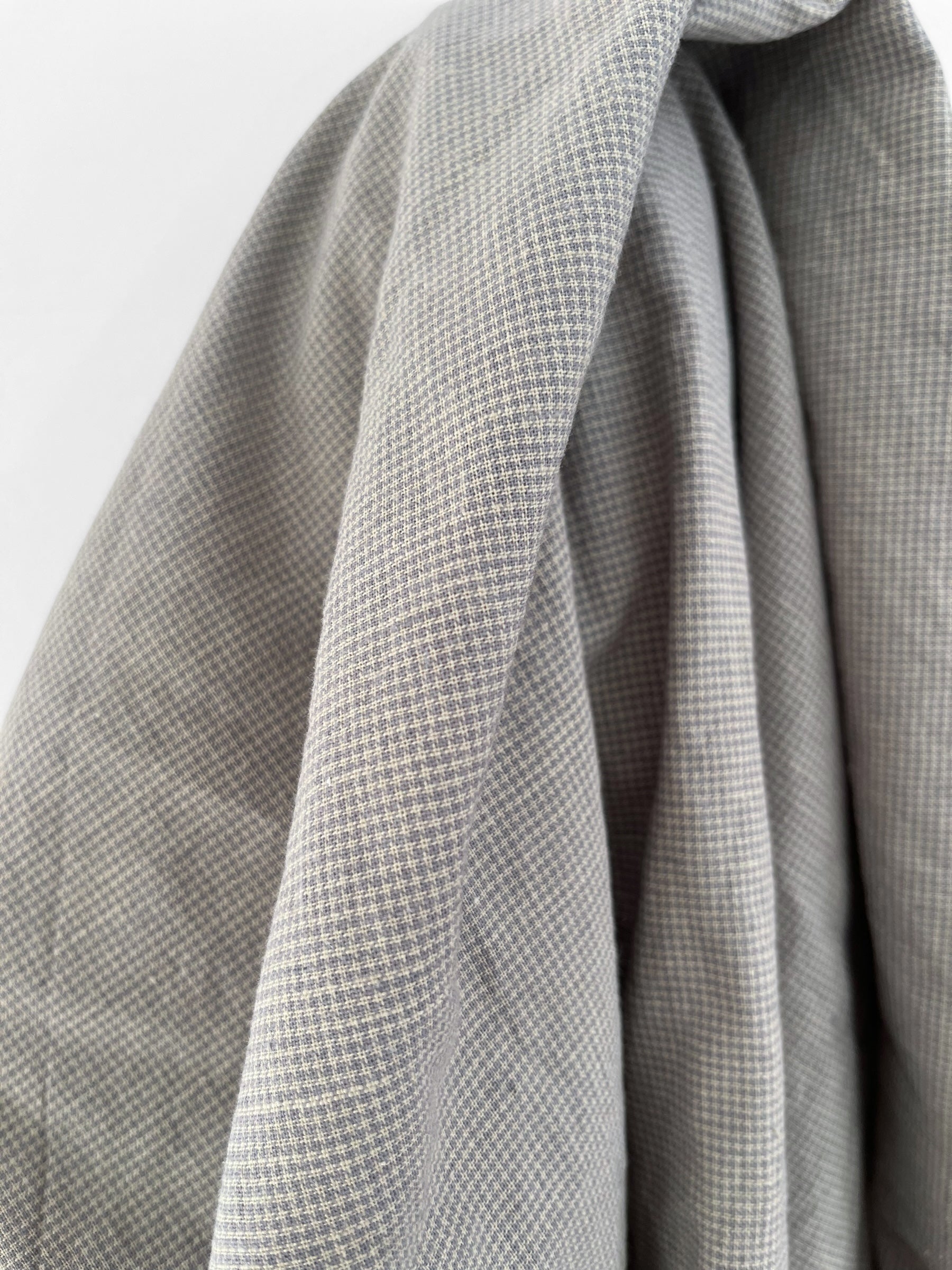 Beautifully soft yarn dyed cotton/linen blend in a classic micro checks pattern. The dove colourway includes dove blue and natural white.