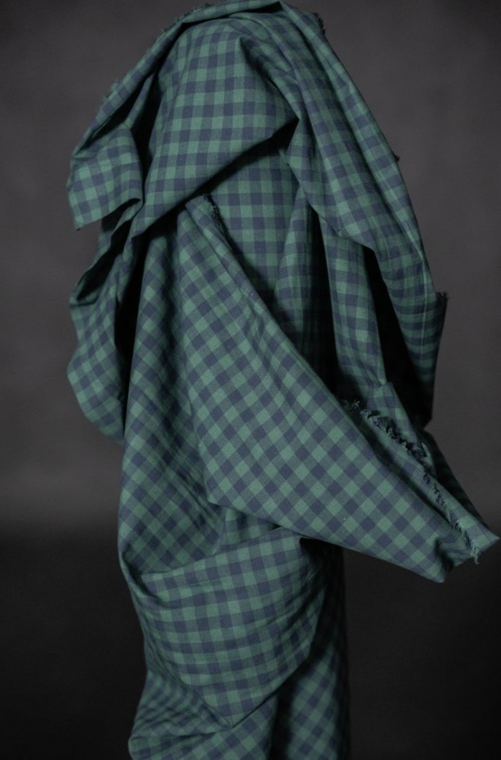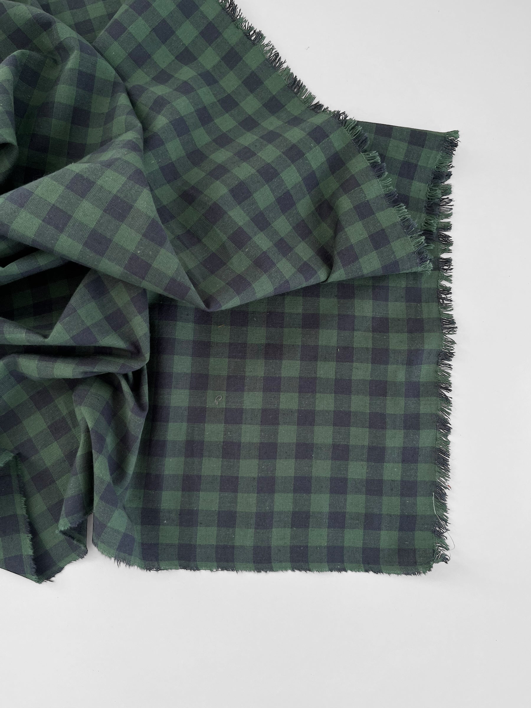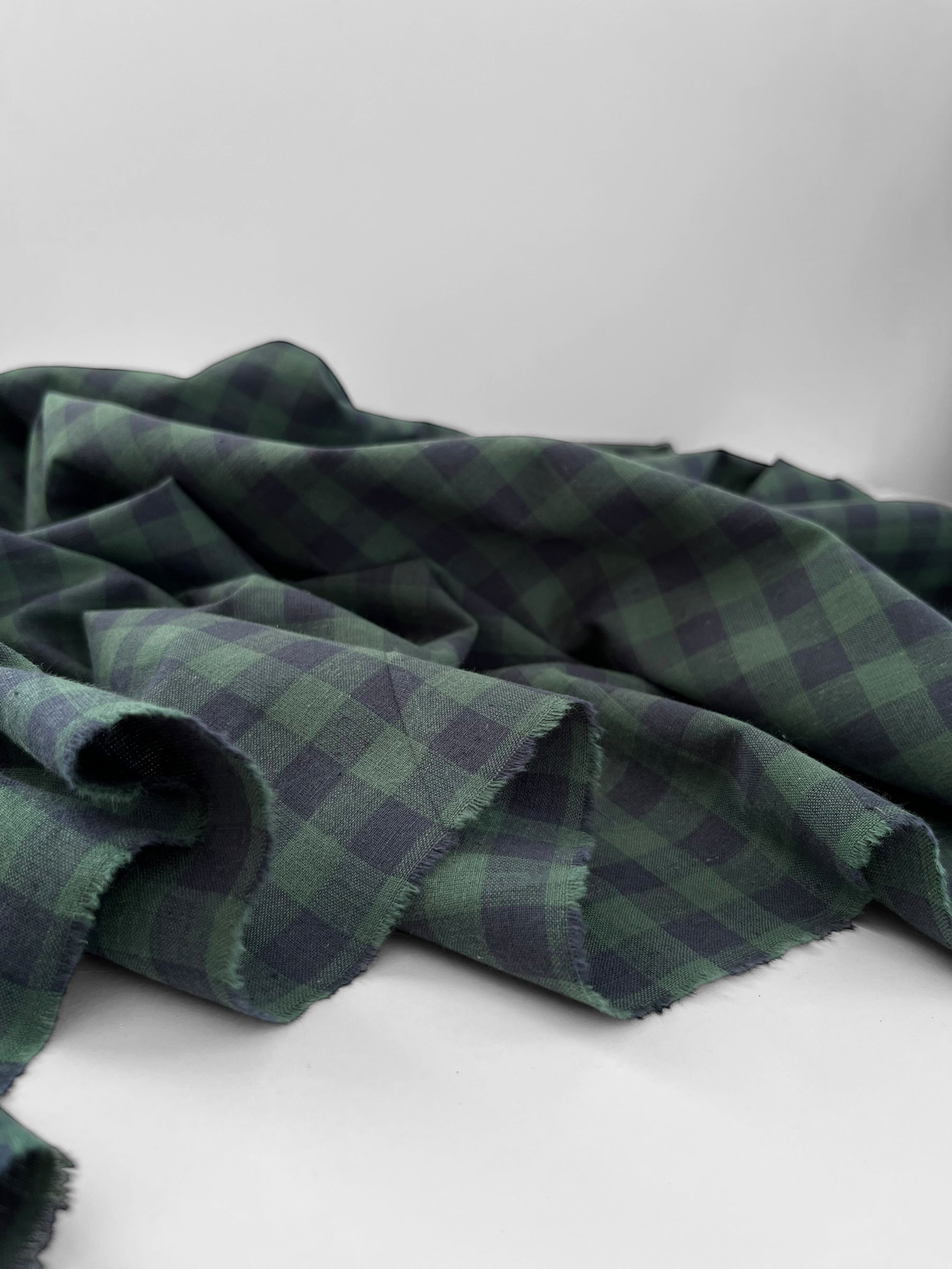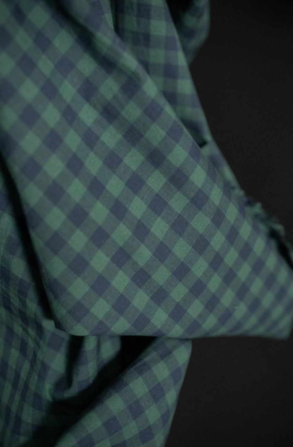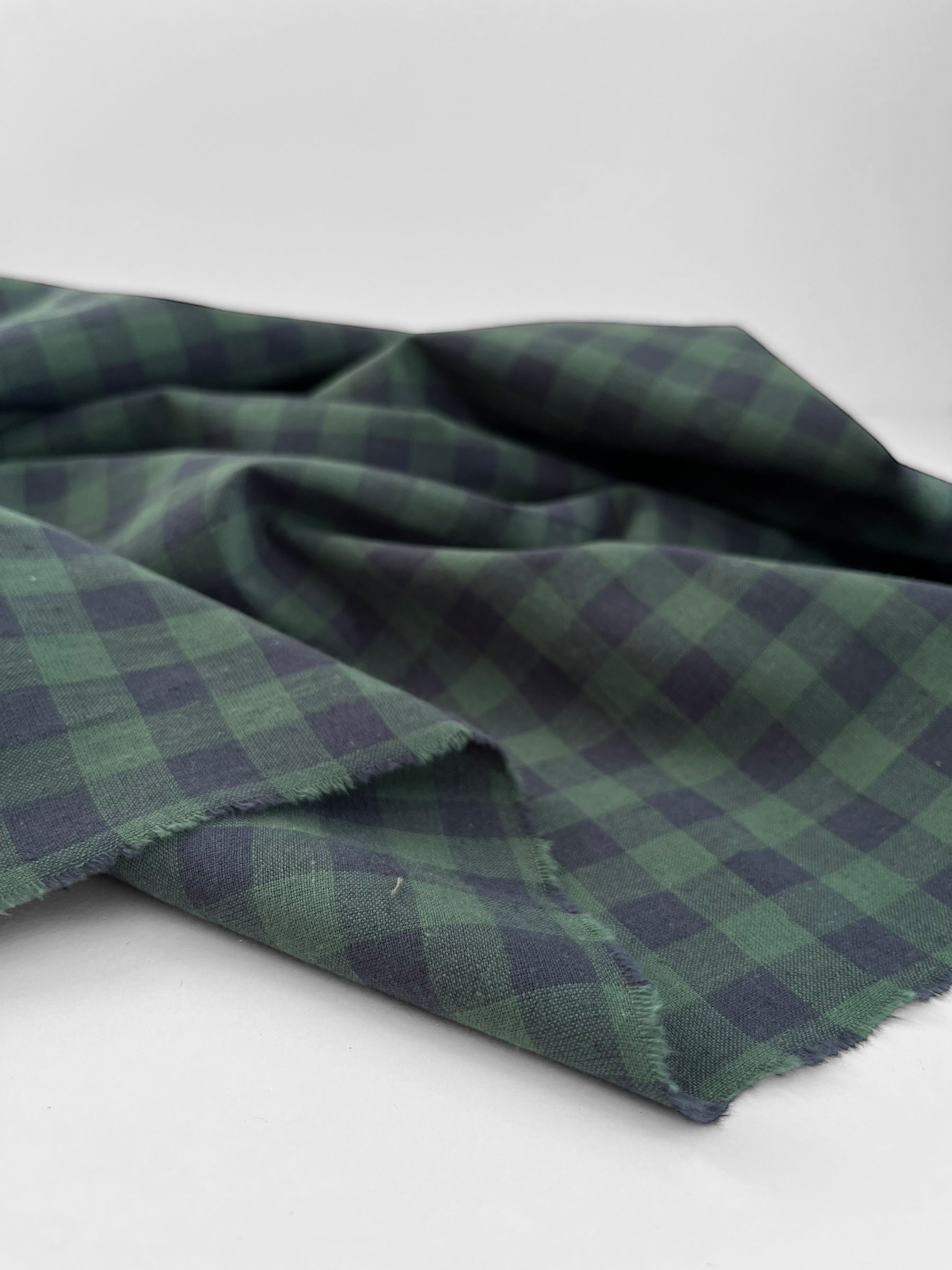 A dark grassy green and navy blue gingham by the iconic Merchant & Mills.