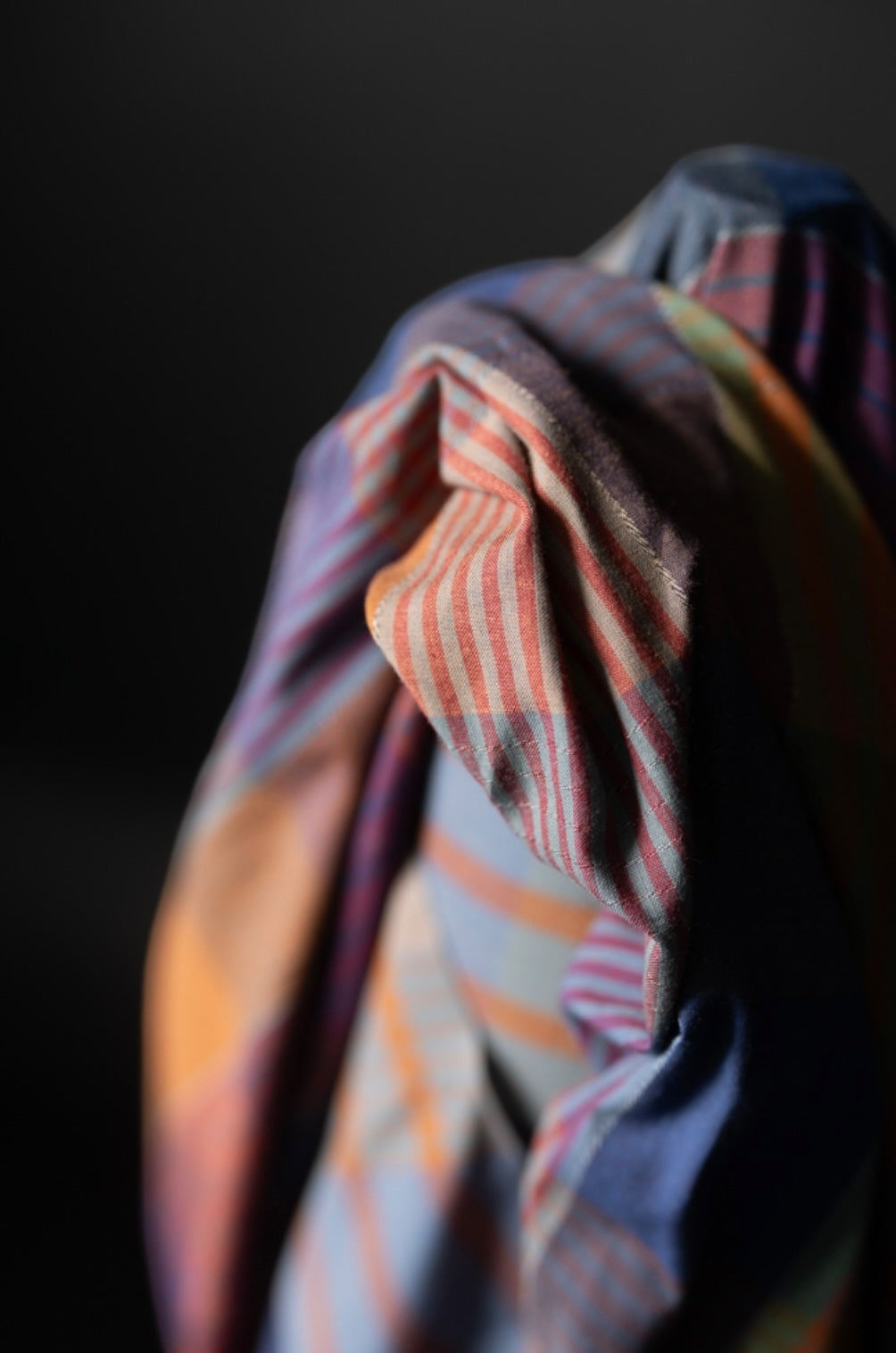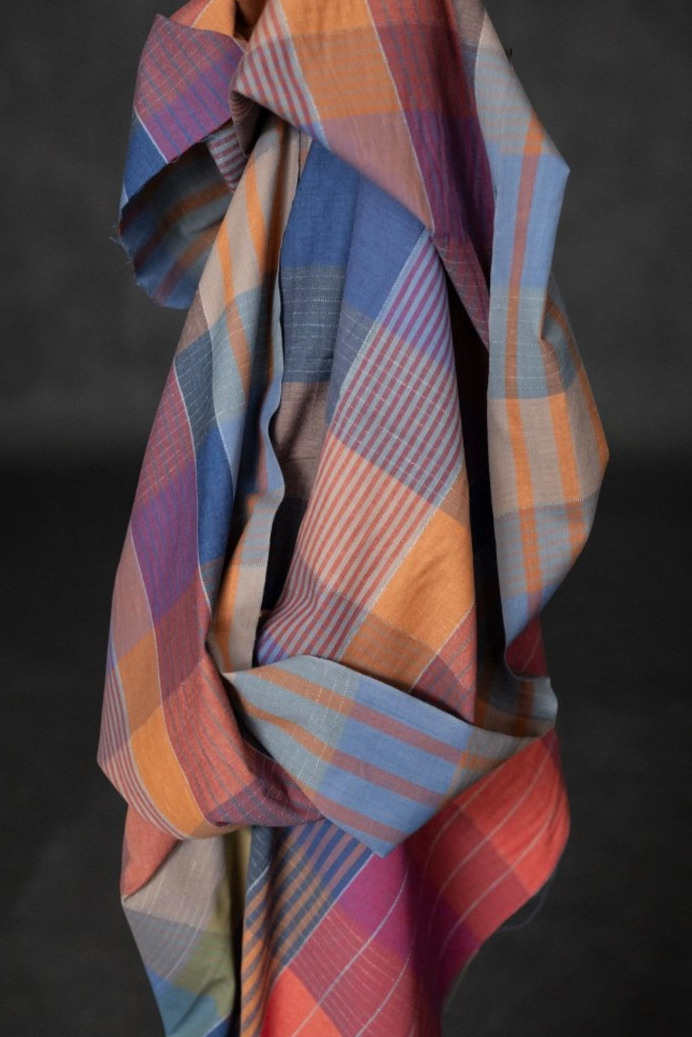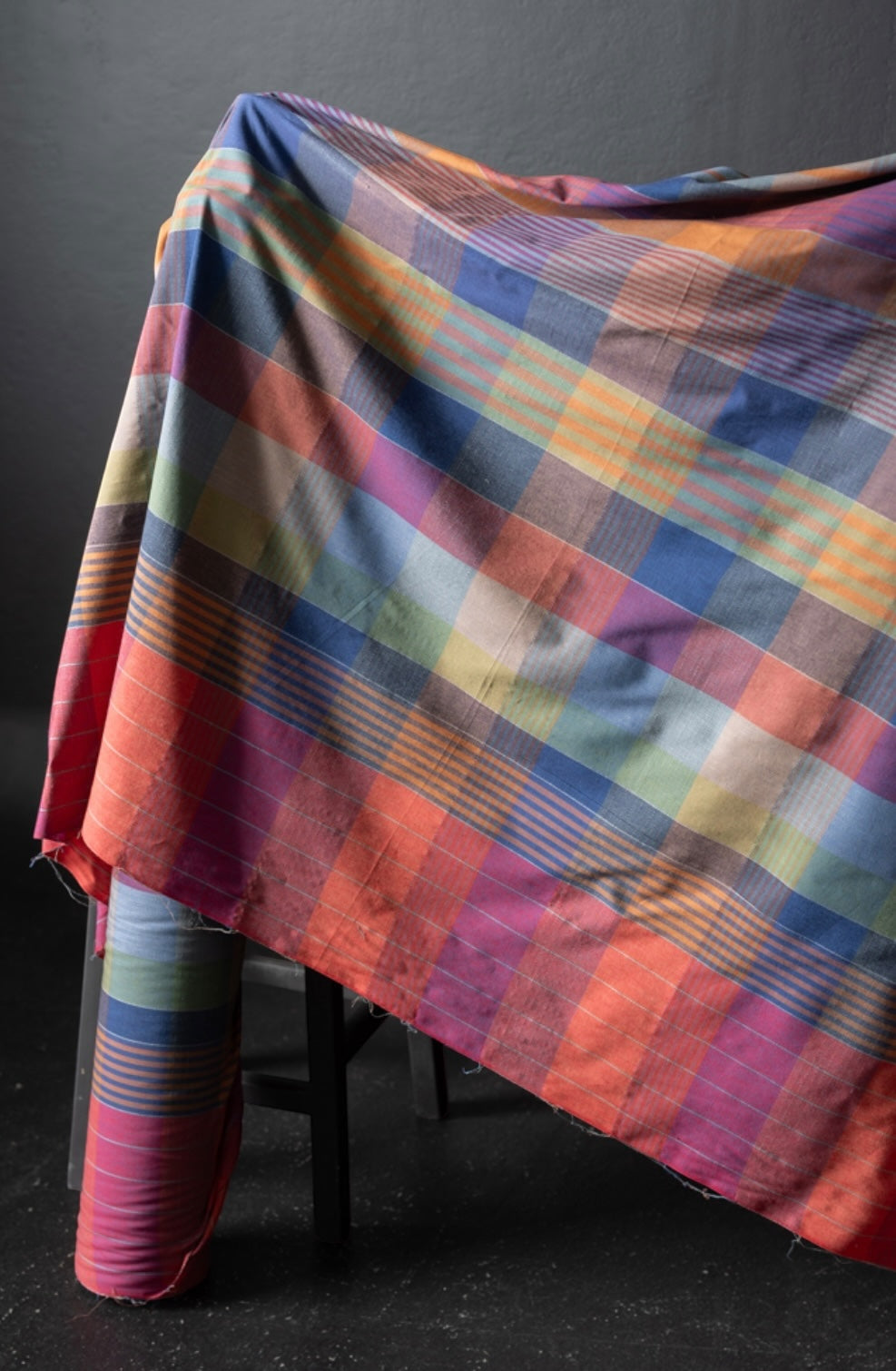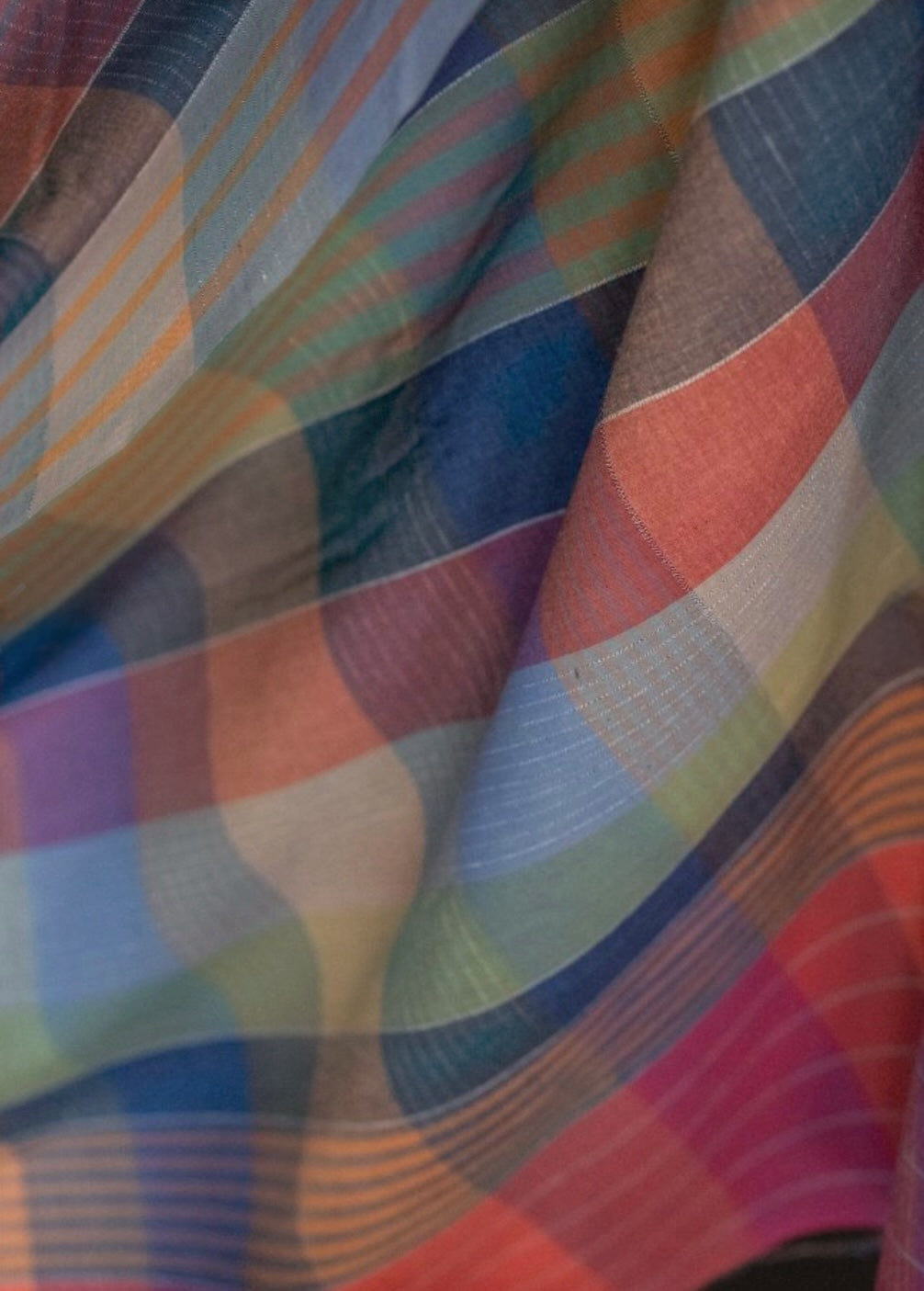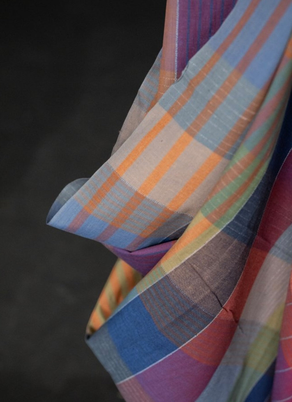 A highly detailed, handloom warm multi-coloured check with delicate details woven through.