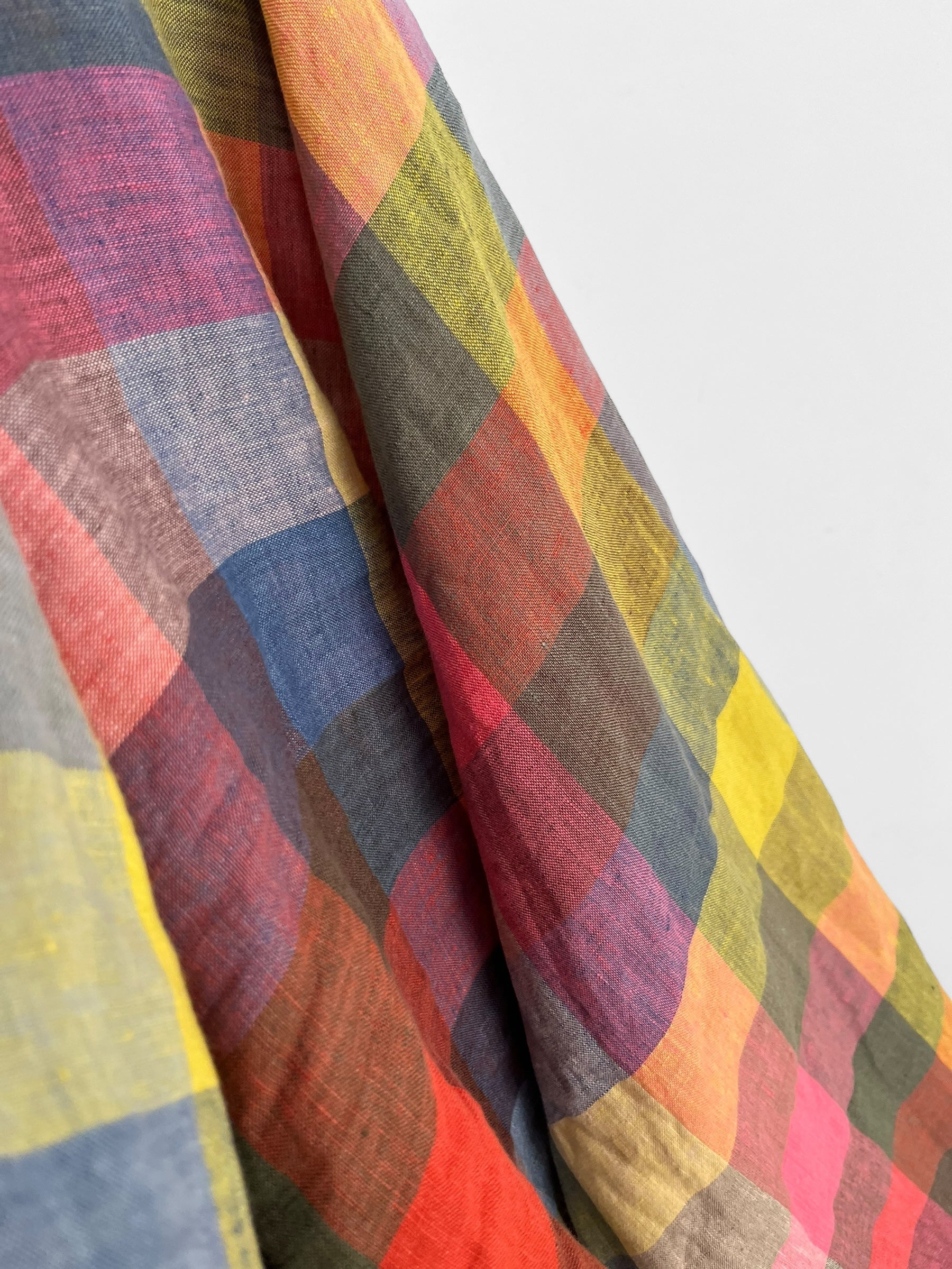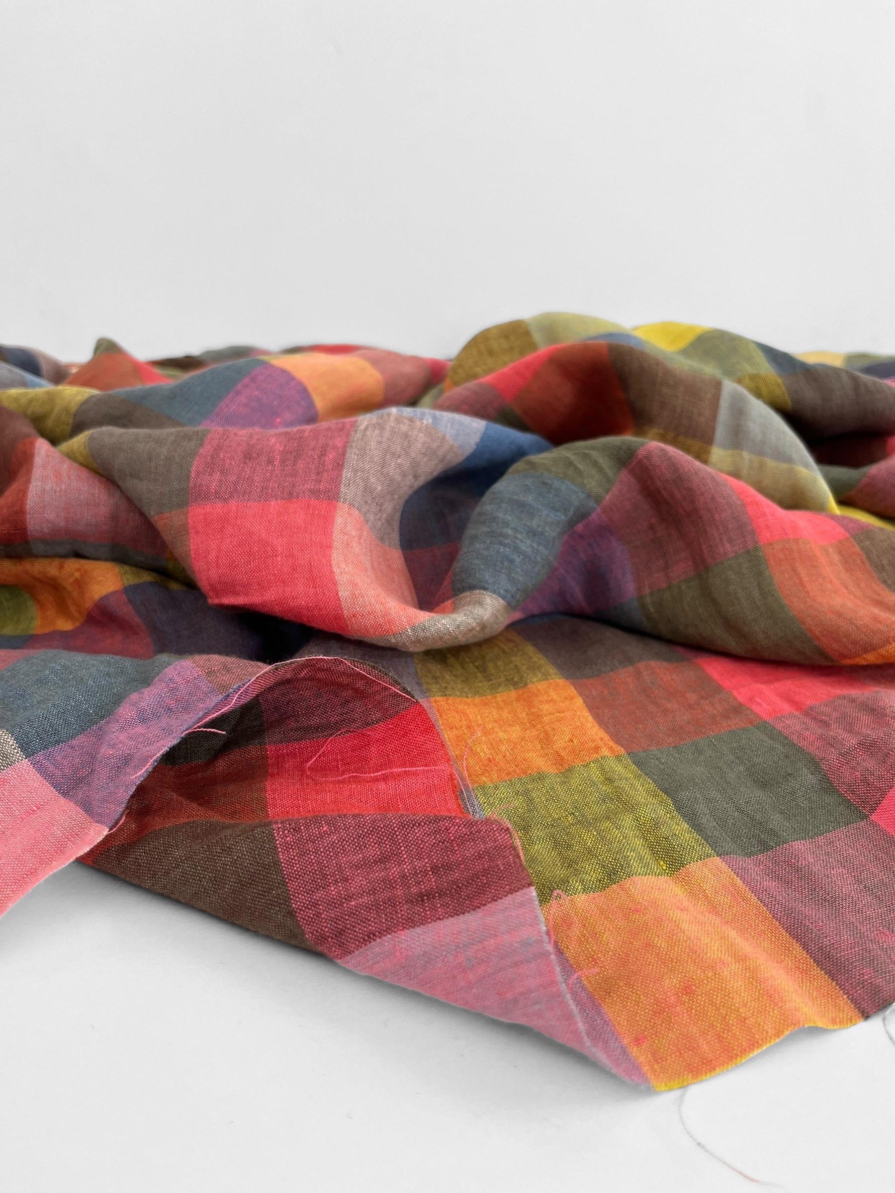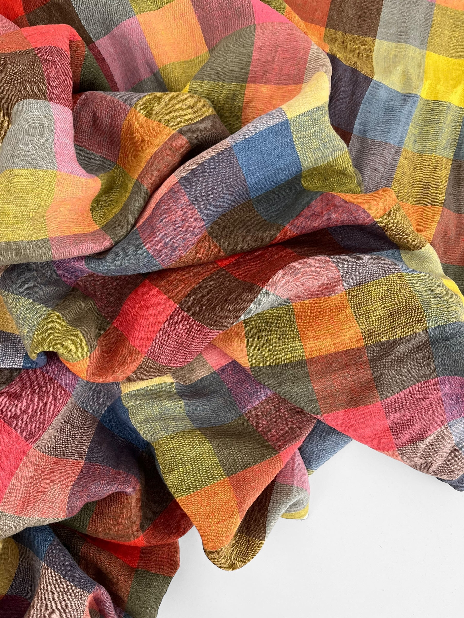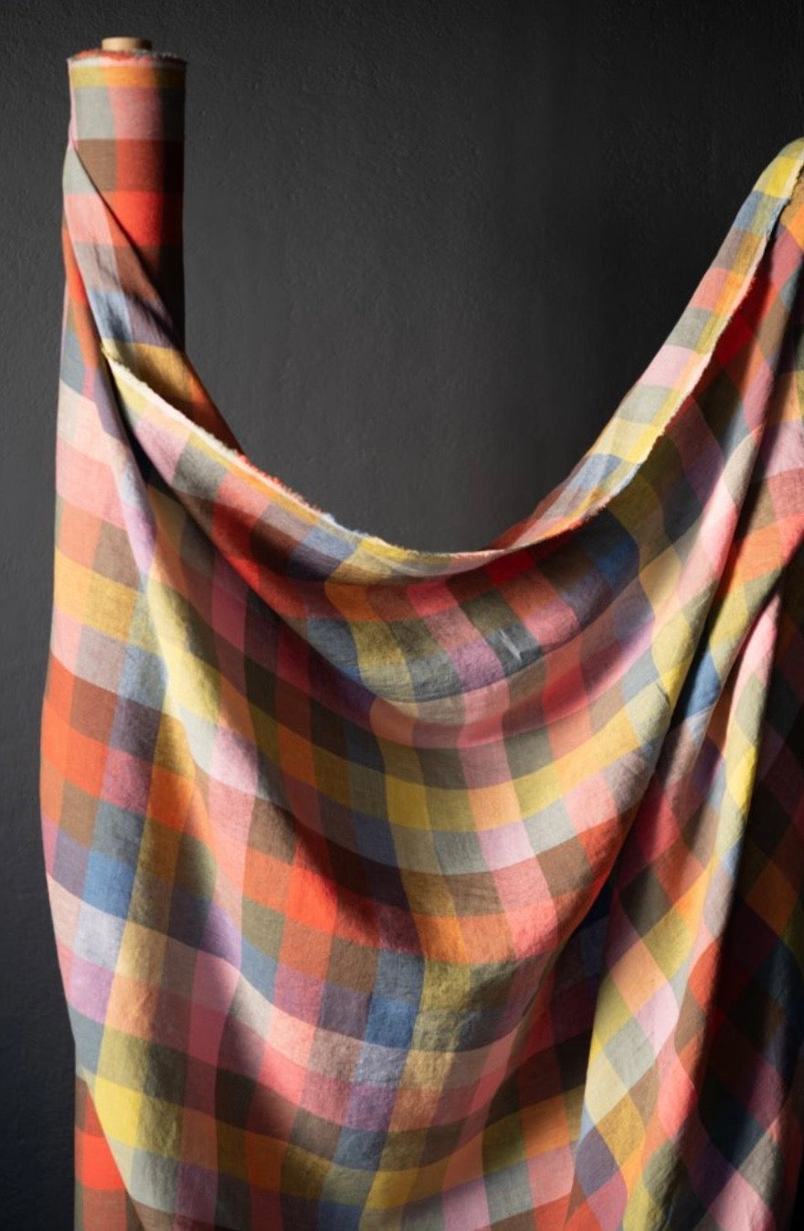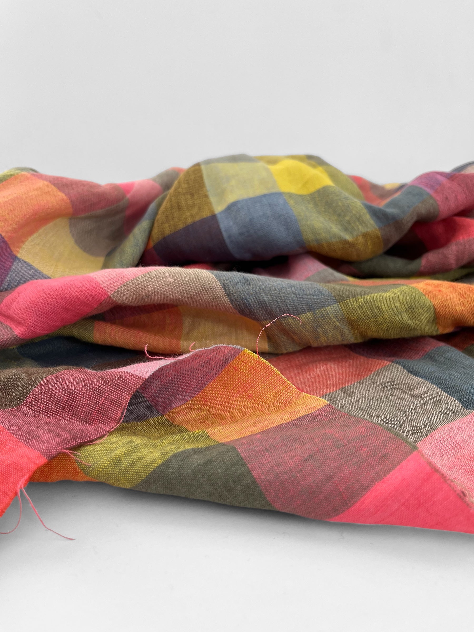 A festival of colour - this large scale check is made up of bright pinks, blues, greens, yellow and orange.
