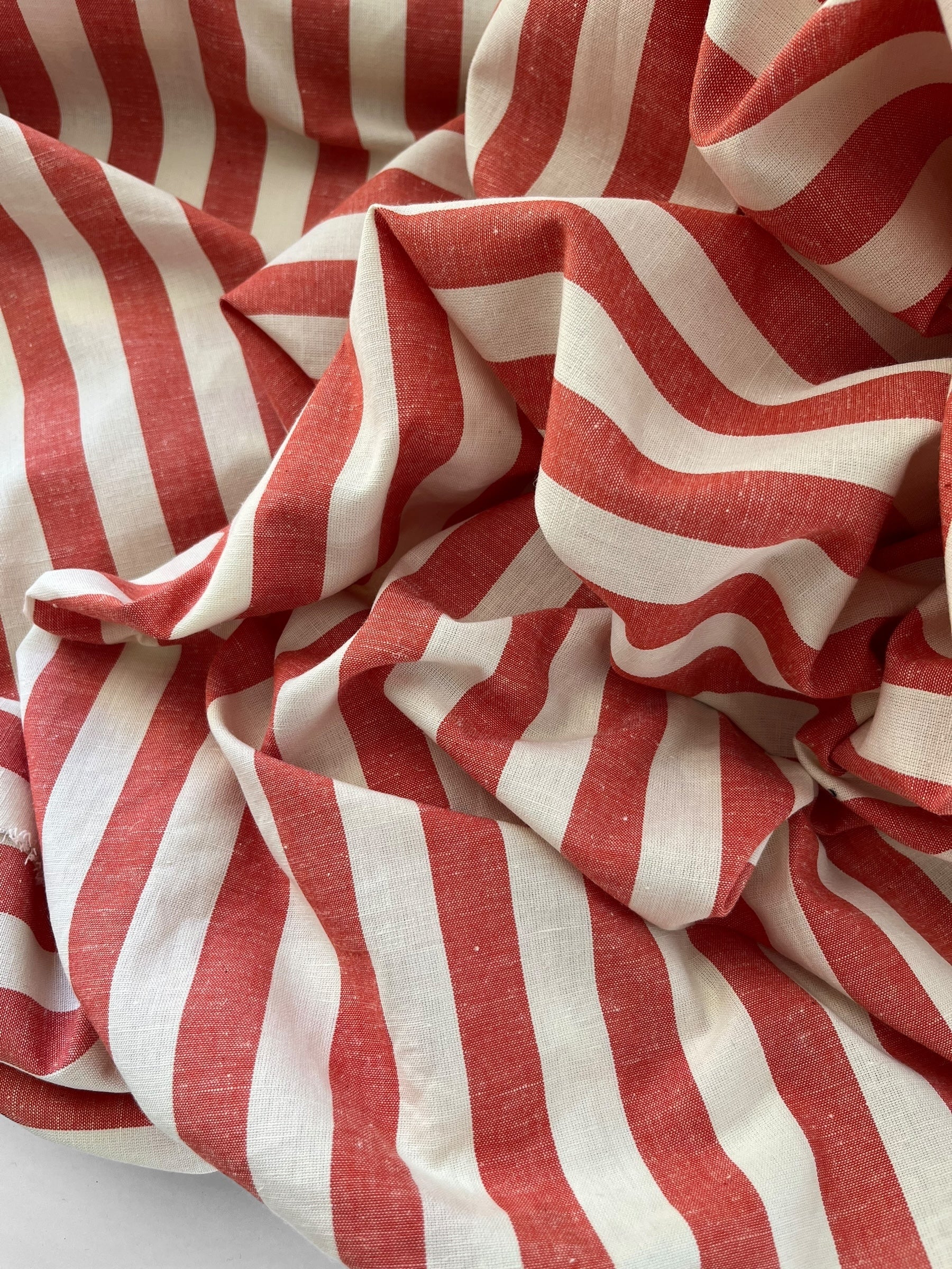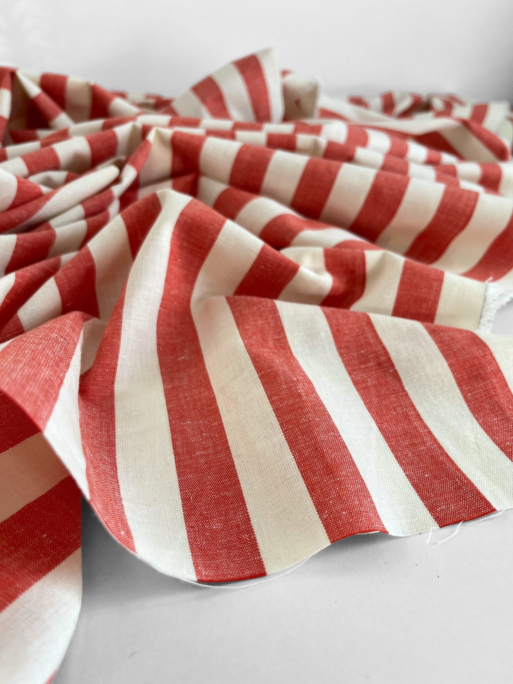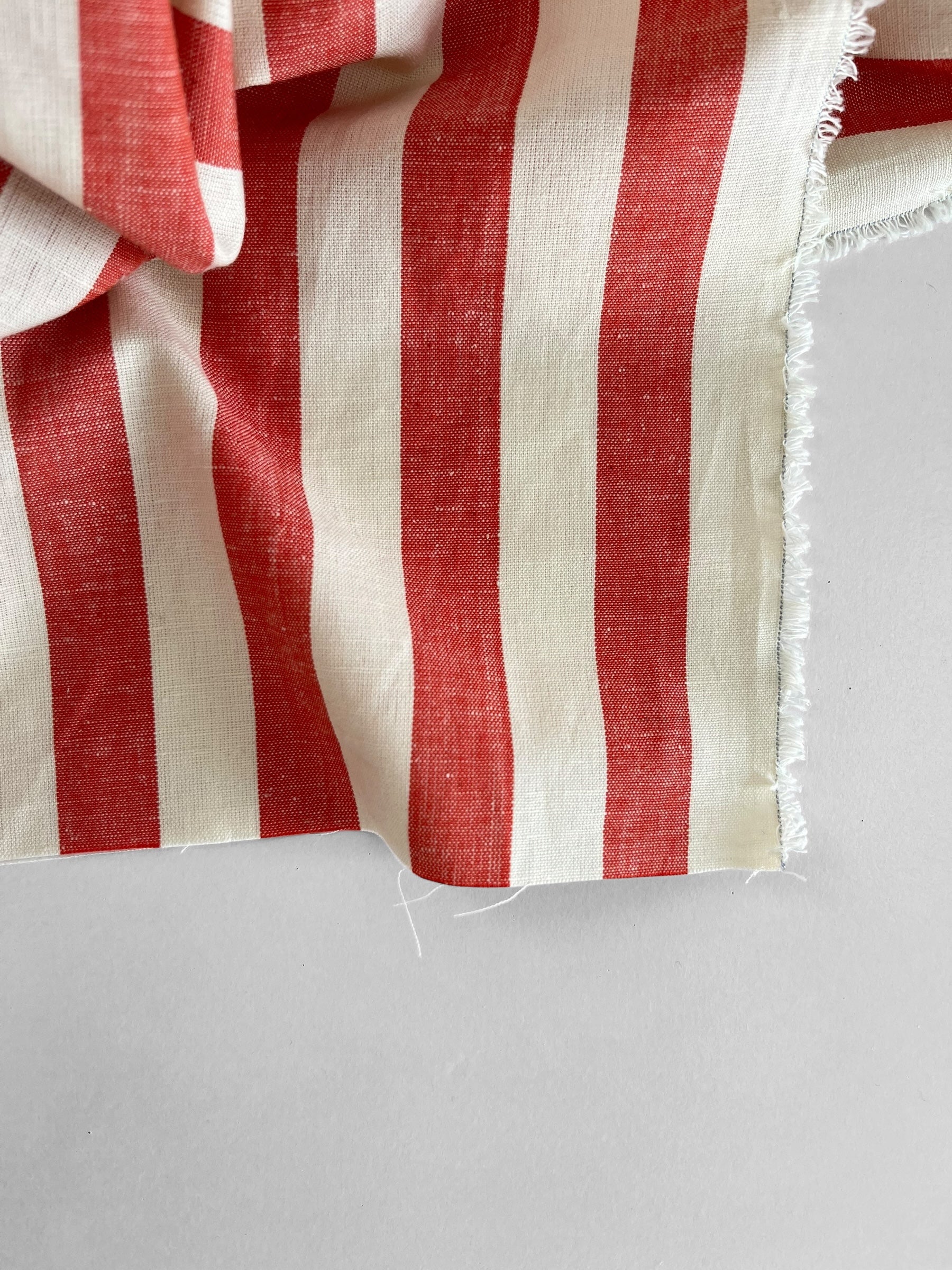 A classic fresh wide stripe in bright red and natural white/cream by the iconic Merchant & Mills.