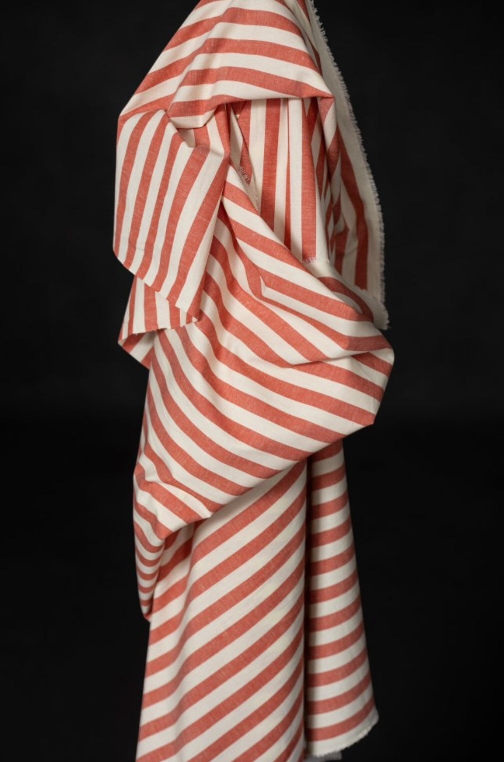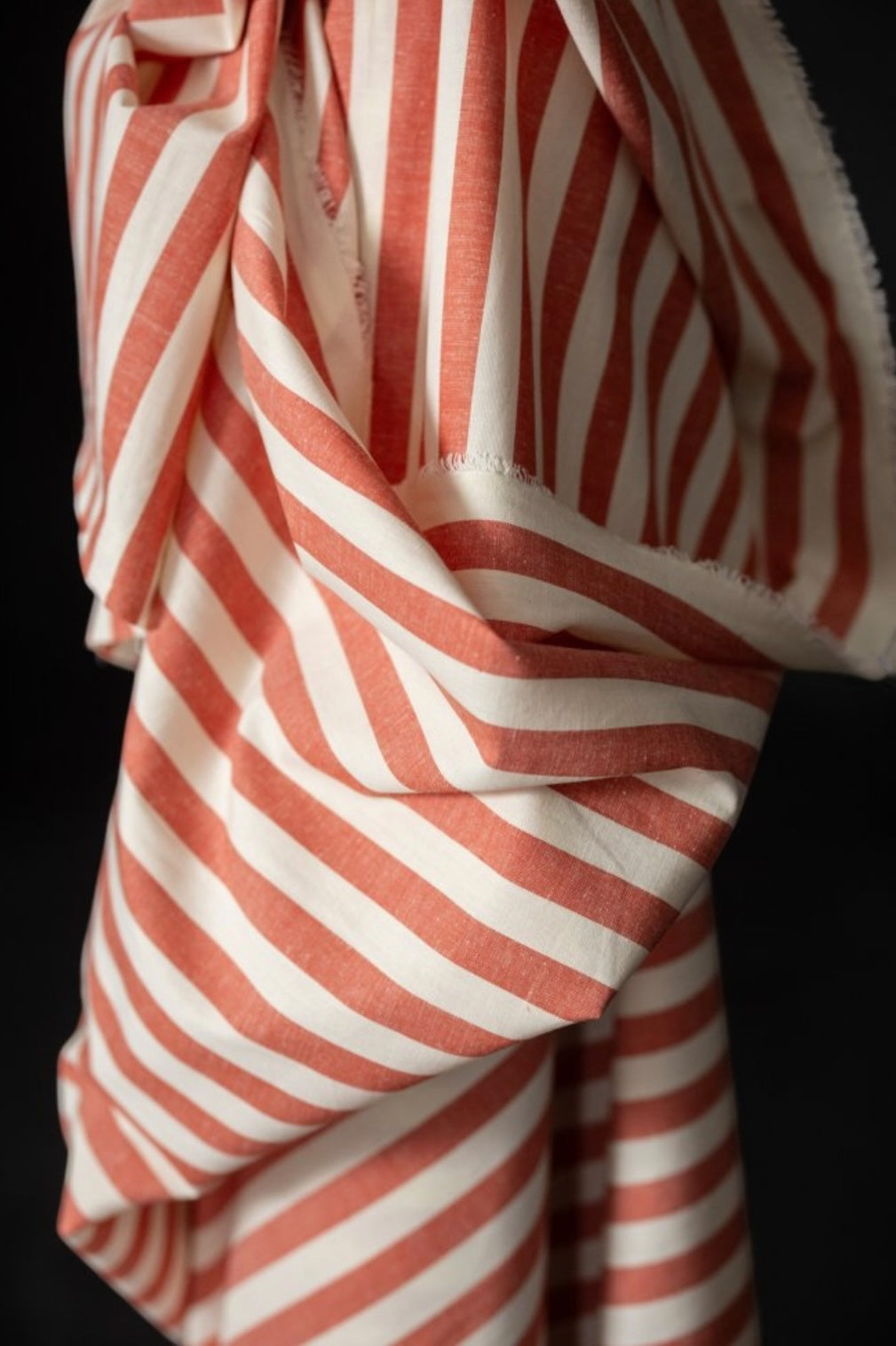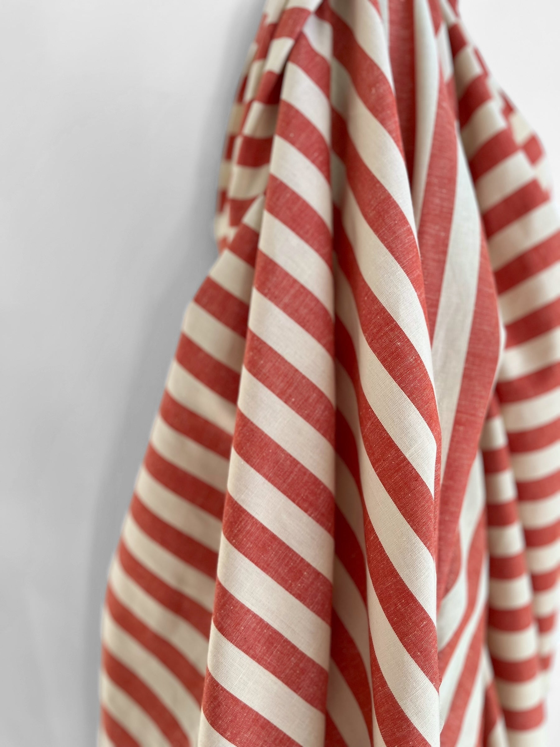 A classic fresh wide stripe in bright red and natural white/cream by the iconic Merchant & Mills.