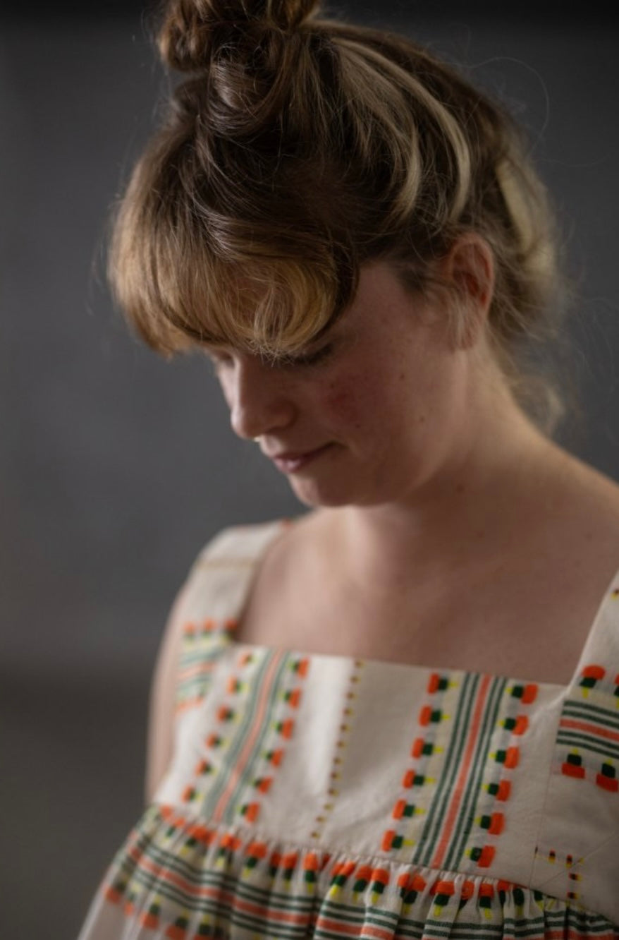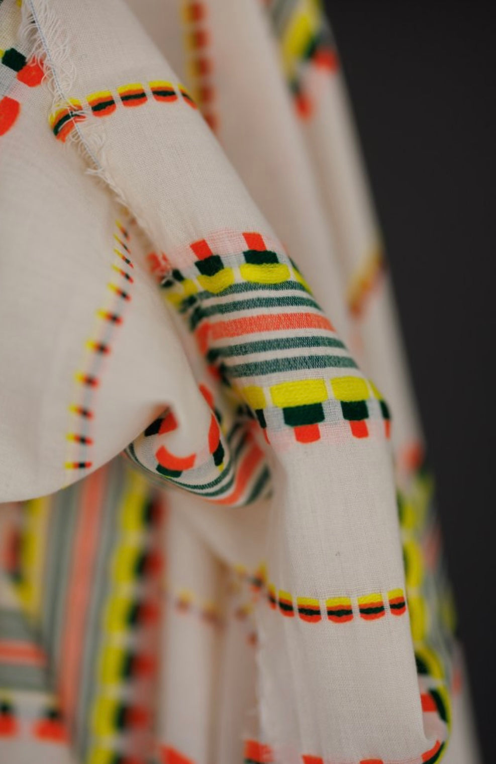 This cloth is bringing the sunshine! A vibrant soft cotton dobby design with pops of orange, yellow and green.