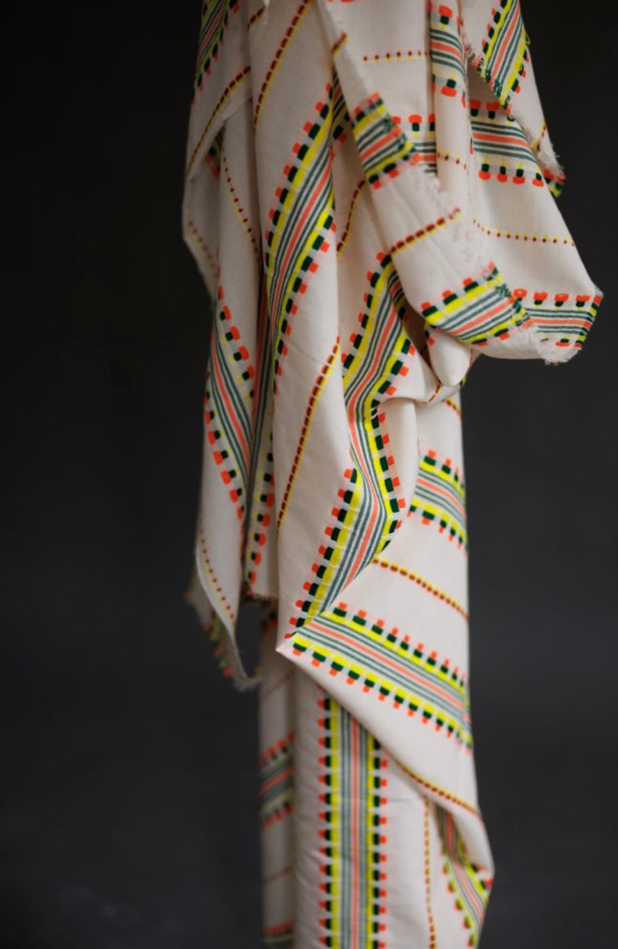 - Pattern details: The stripes runs horizontally from selvedge to selvedge