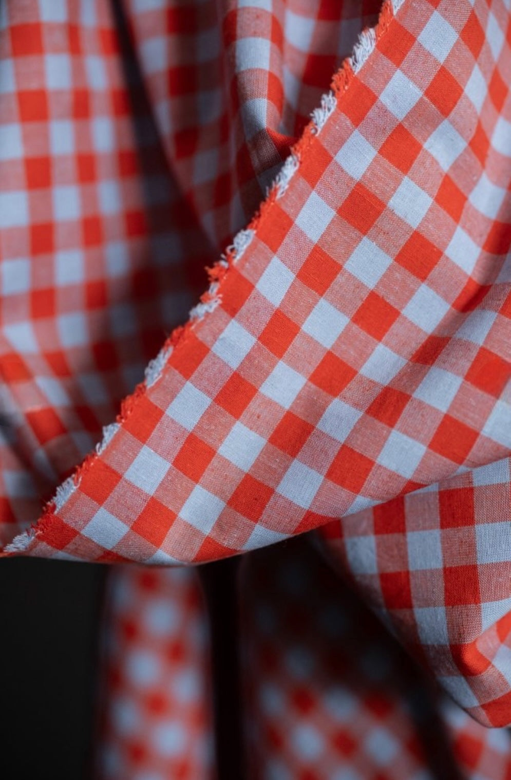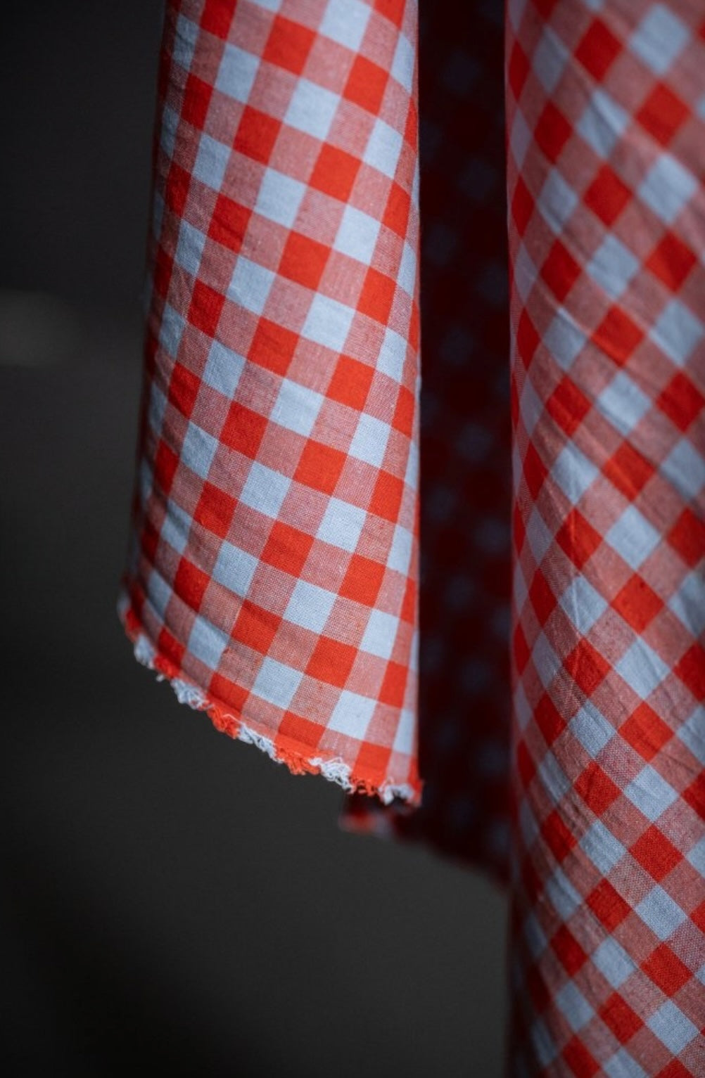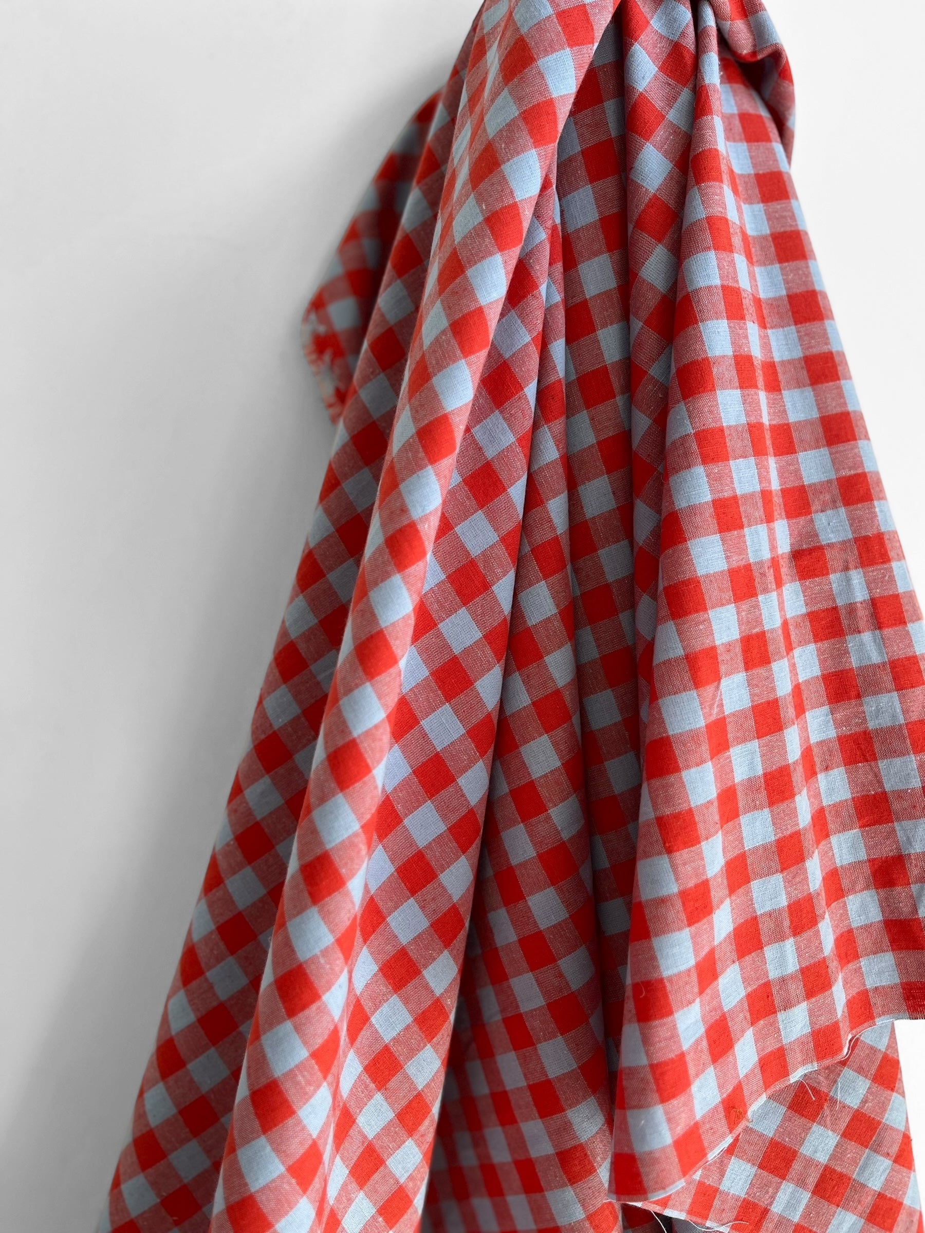 A soft pastel blue and bright red gingham by the iconic Merchant & Mills.