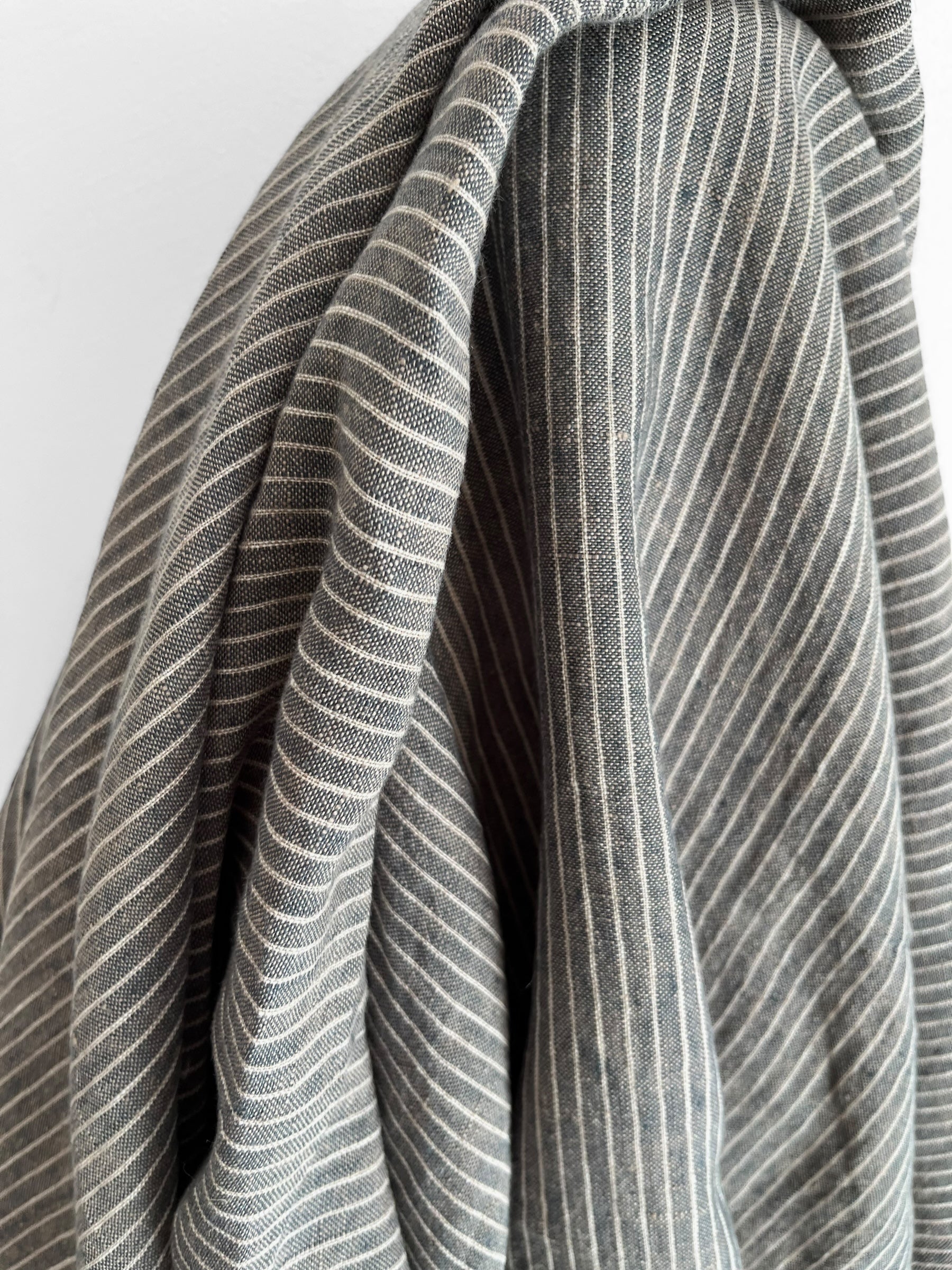 Pure yarn dyed linen, stonewashed at the mill giving it softness and a relaxed worn-in look.