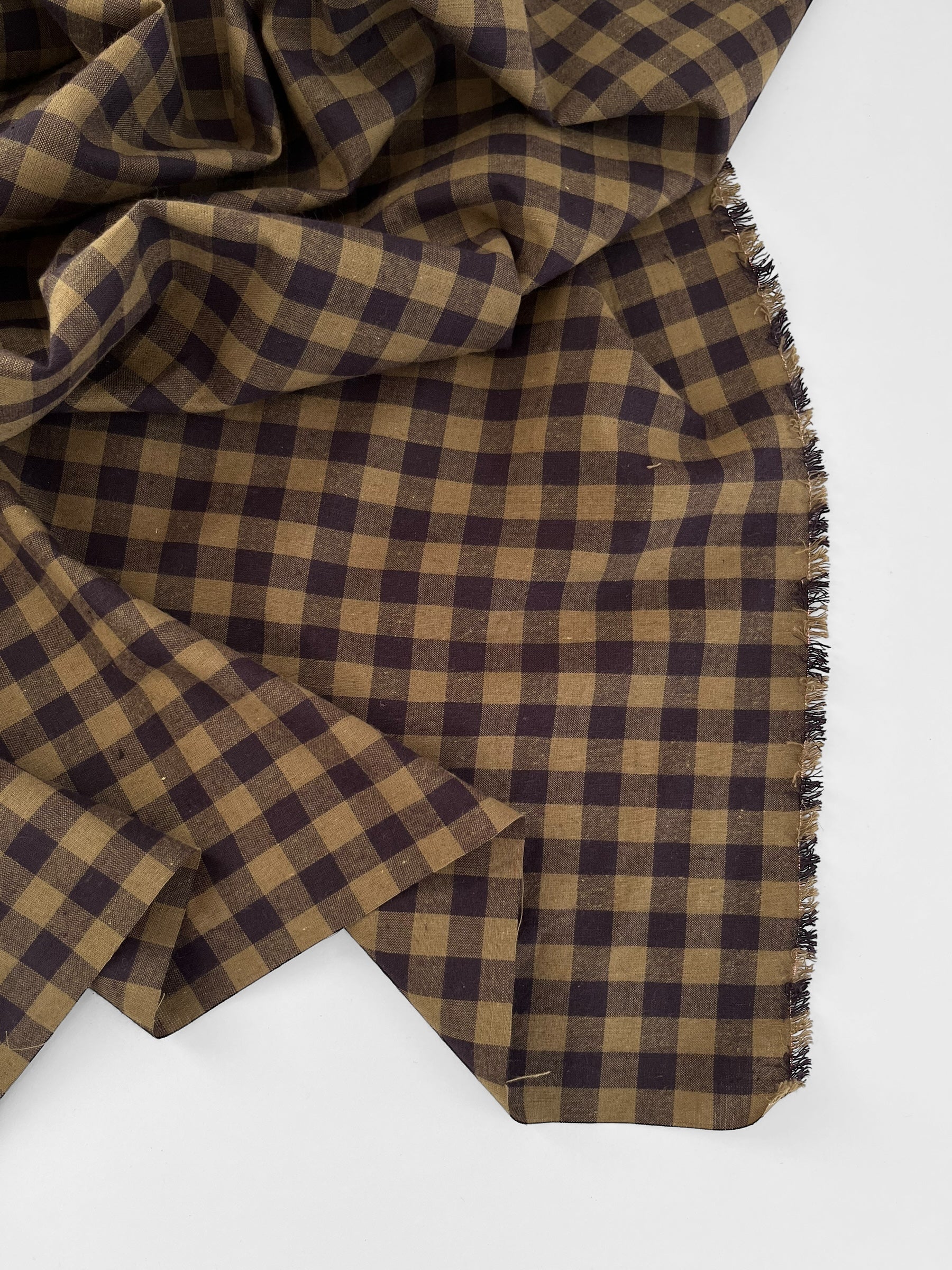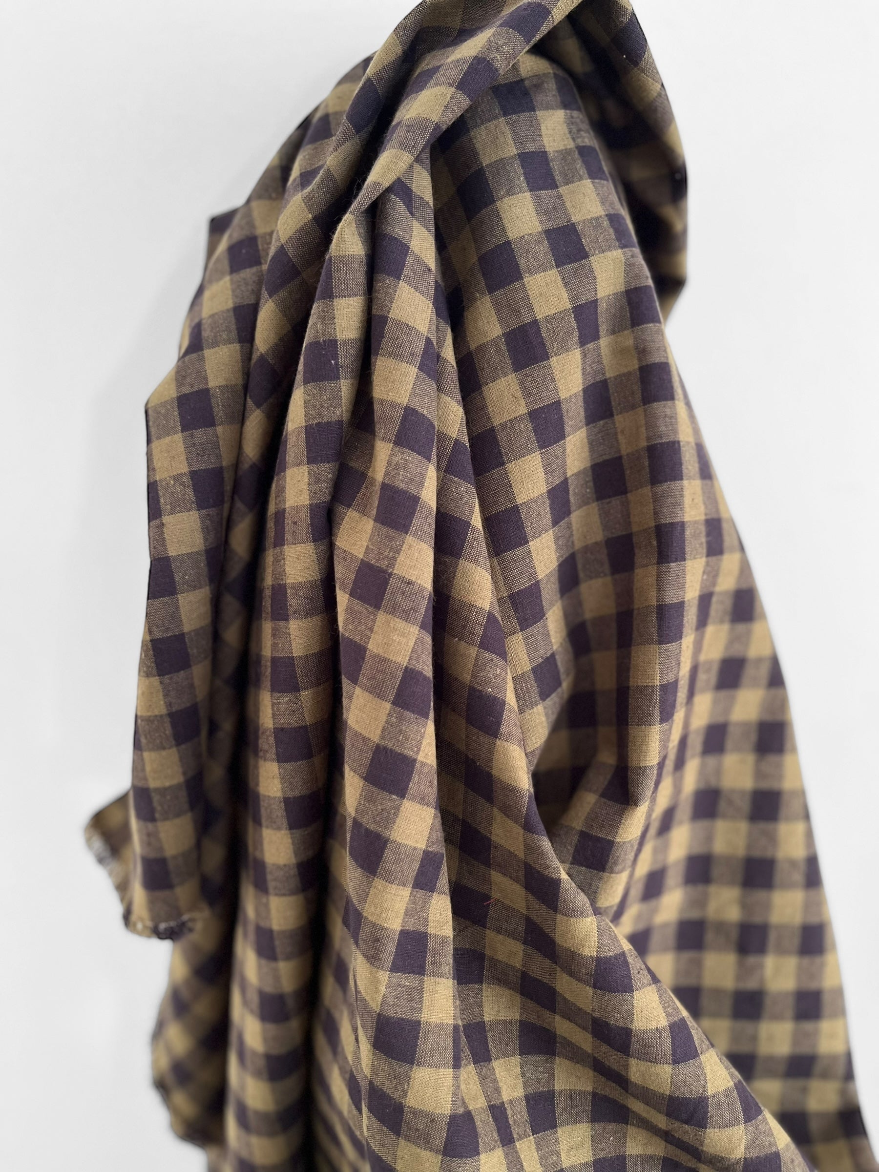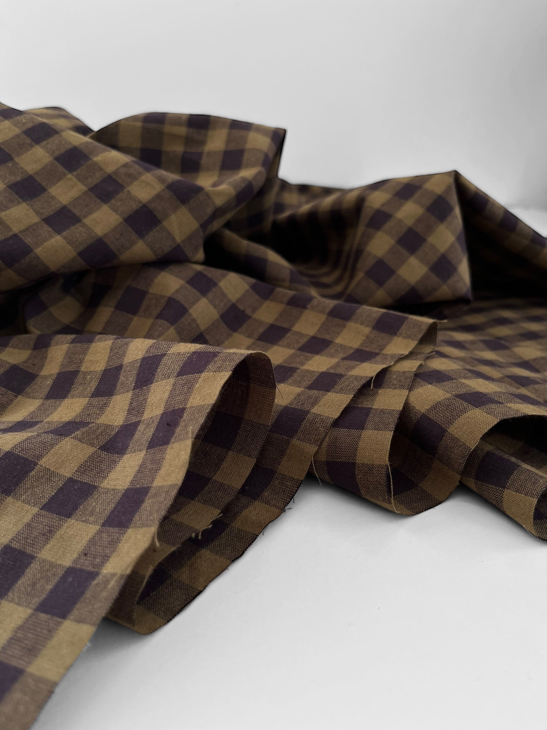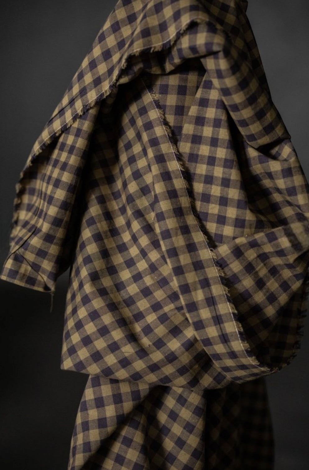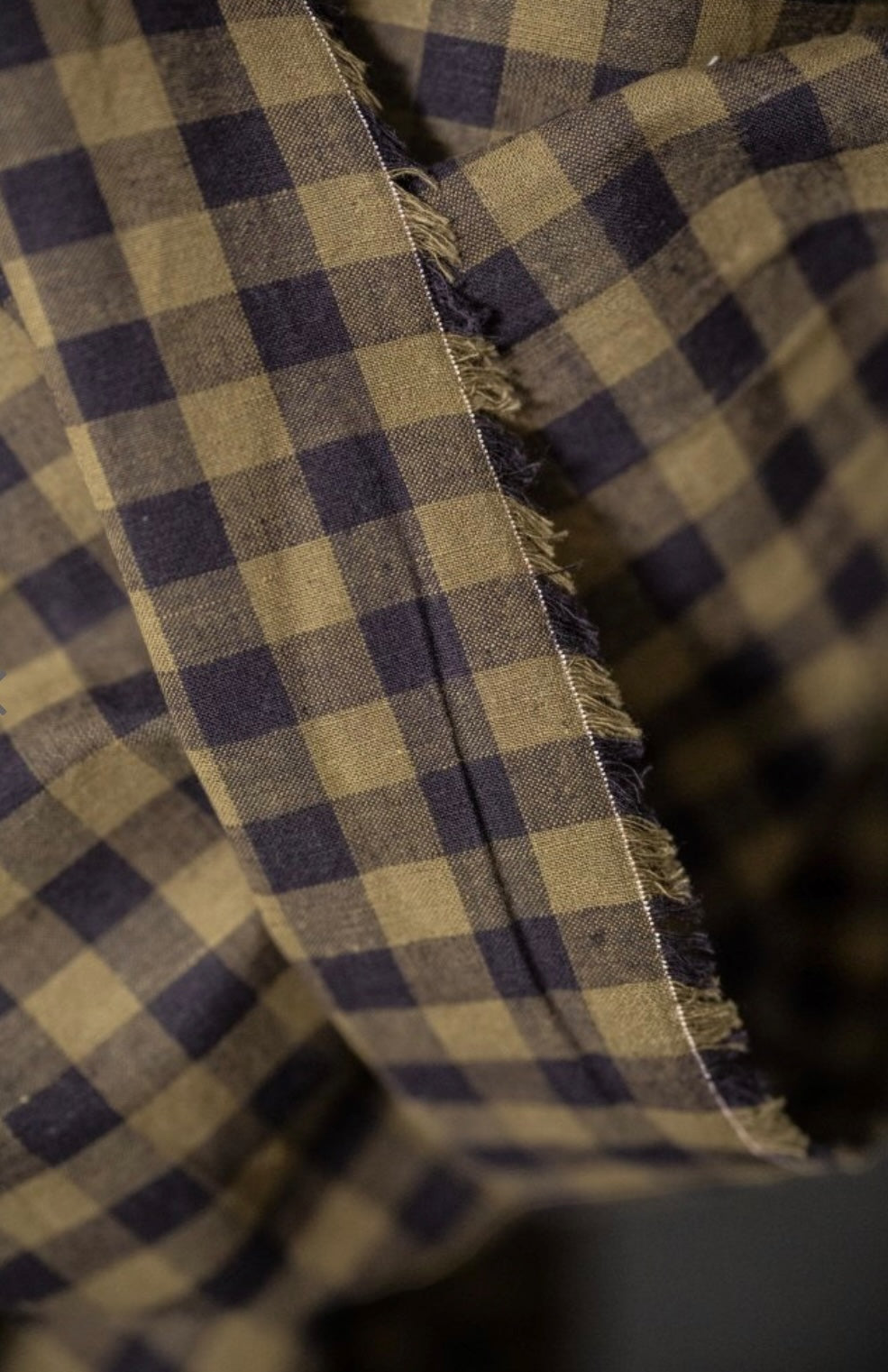 A khaki green and black gingham by the iconic Merchant & Mills.