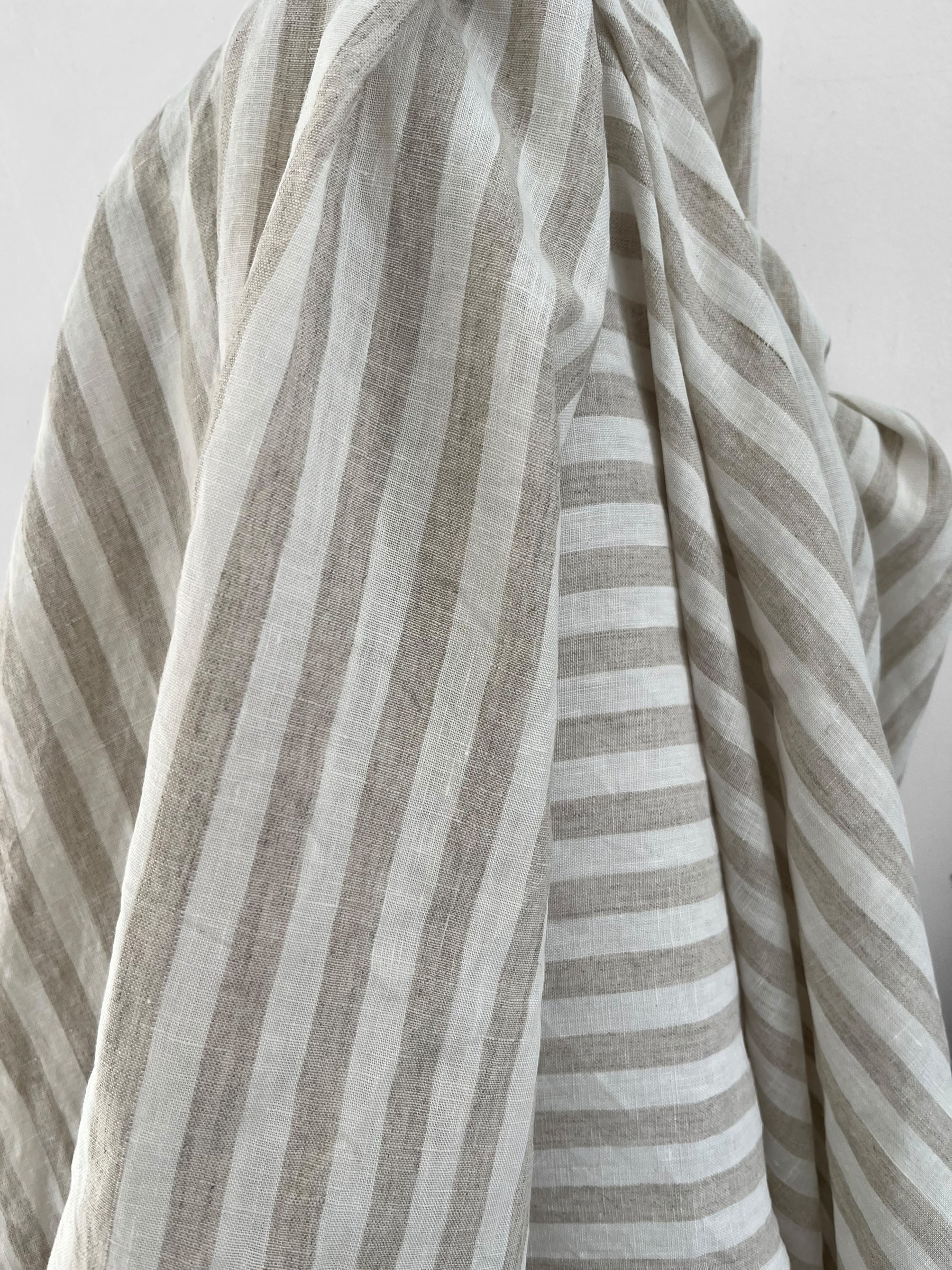 Pure yarn dyed lightweight linen, stonewashed at the mill giving it softness and a relaxed look. Colours include natural flax and white.