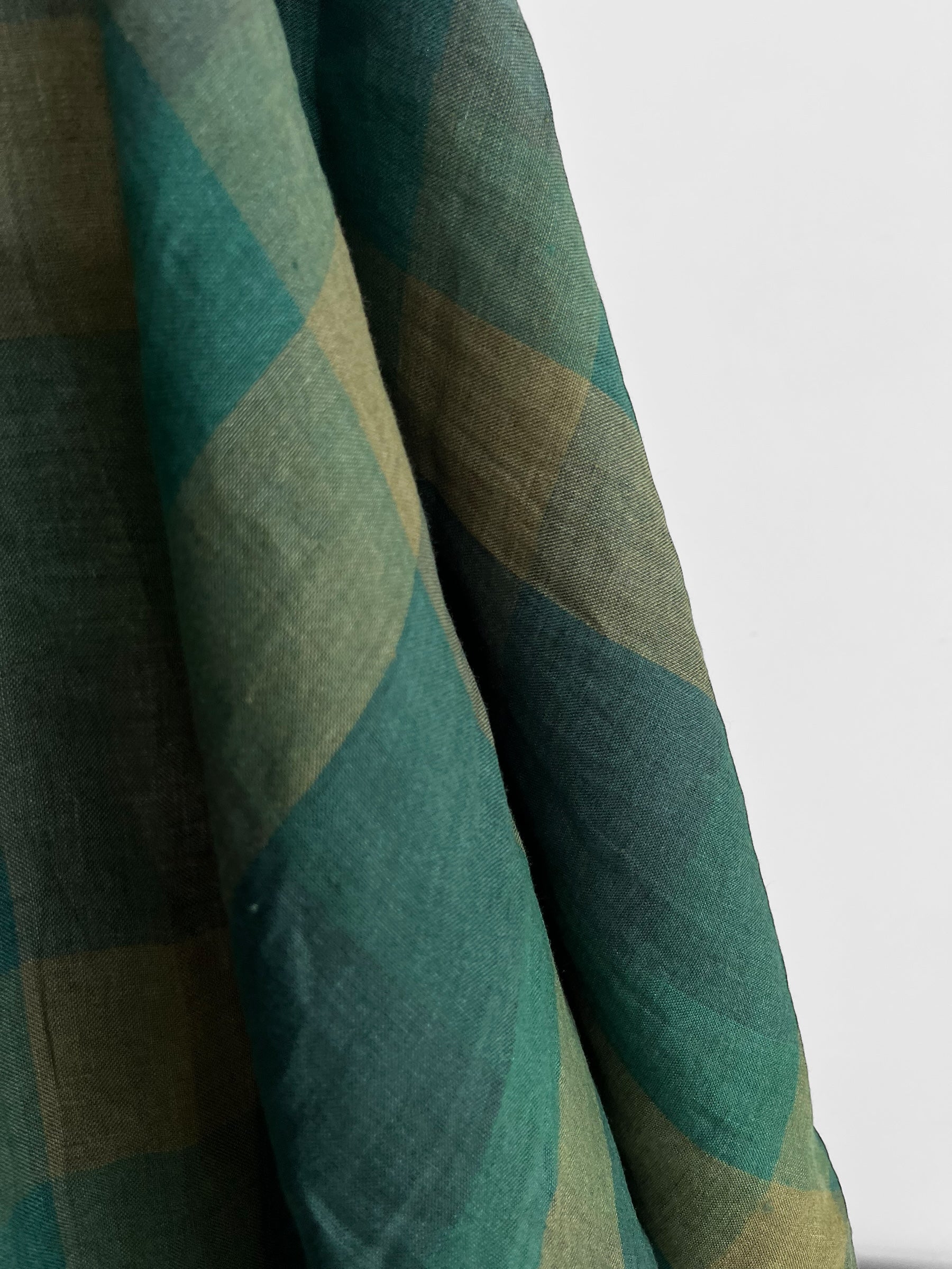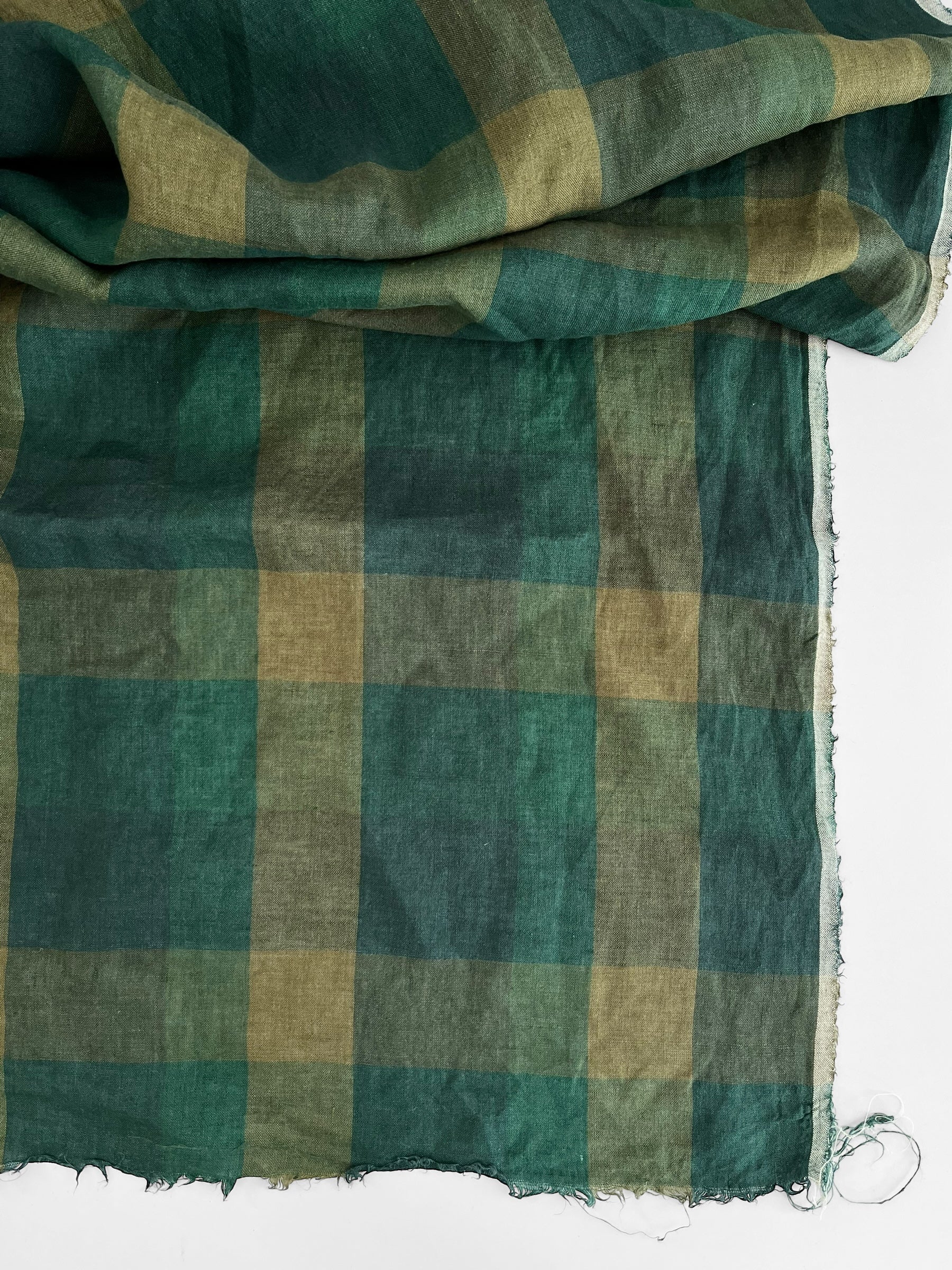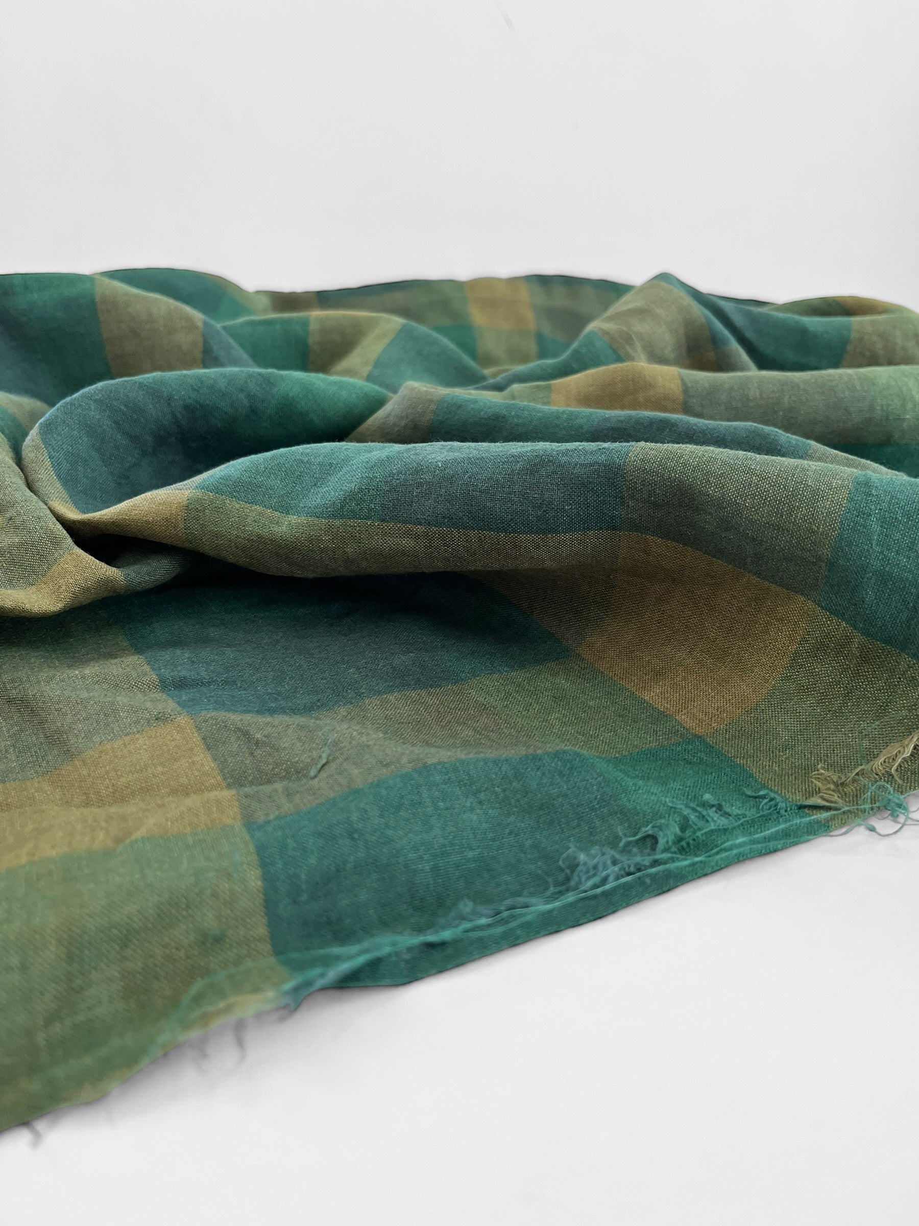 Light weight yarn dyed linen in a timeless tonal green checks pattern.