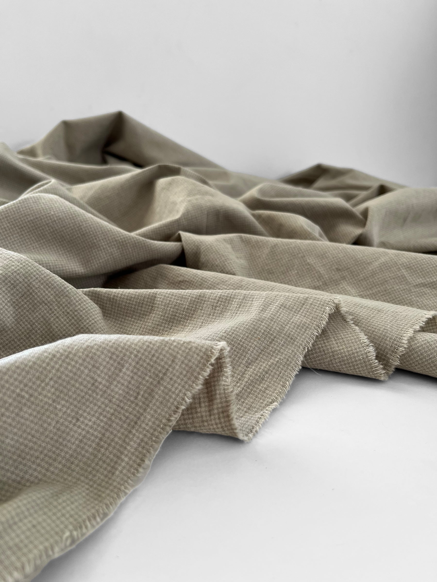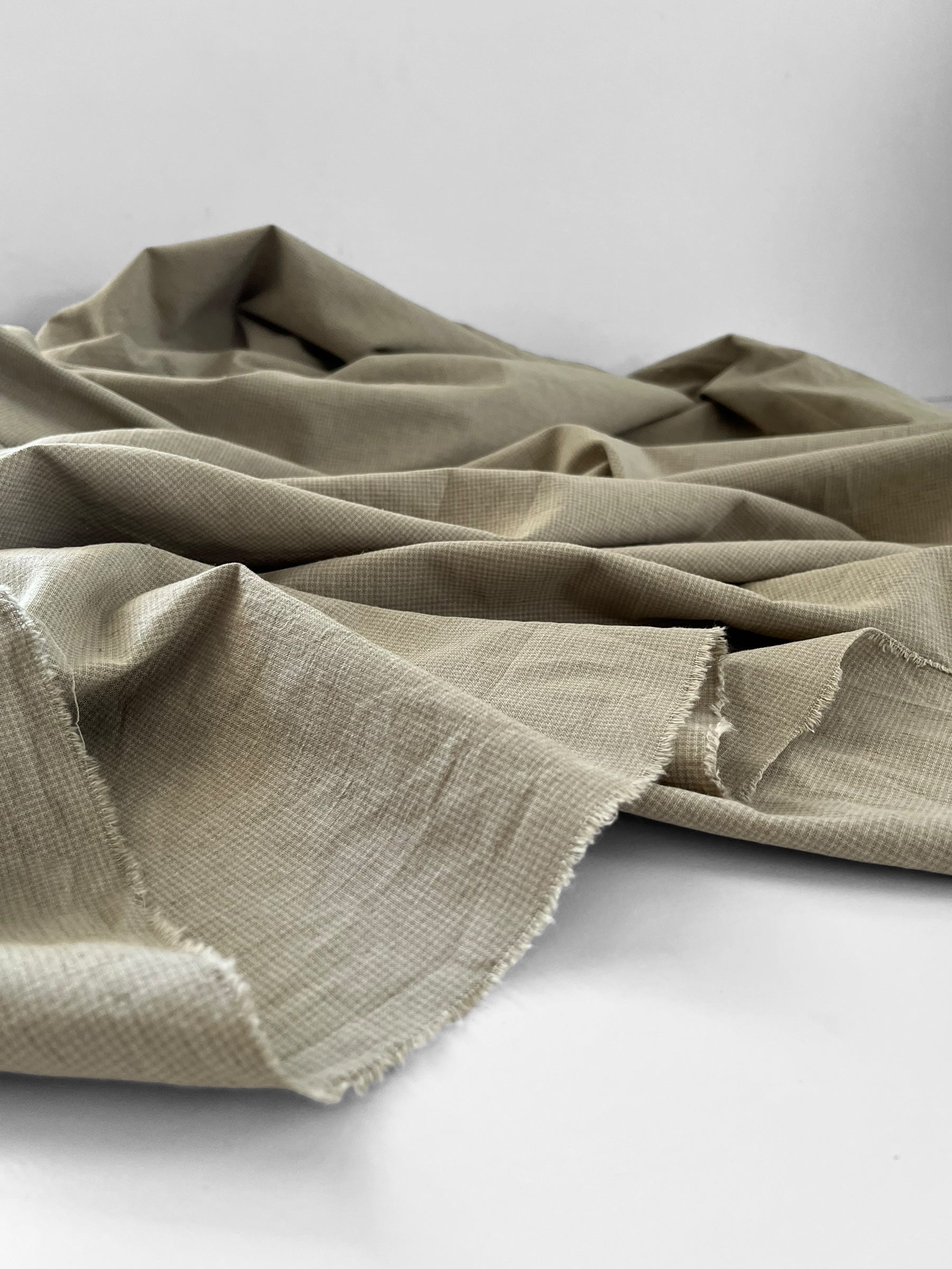 Beautifully soft yarn dyed cotton/linen blend in a classic micro checks pattern. The sage colourway includes sage green and natural white.