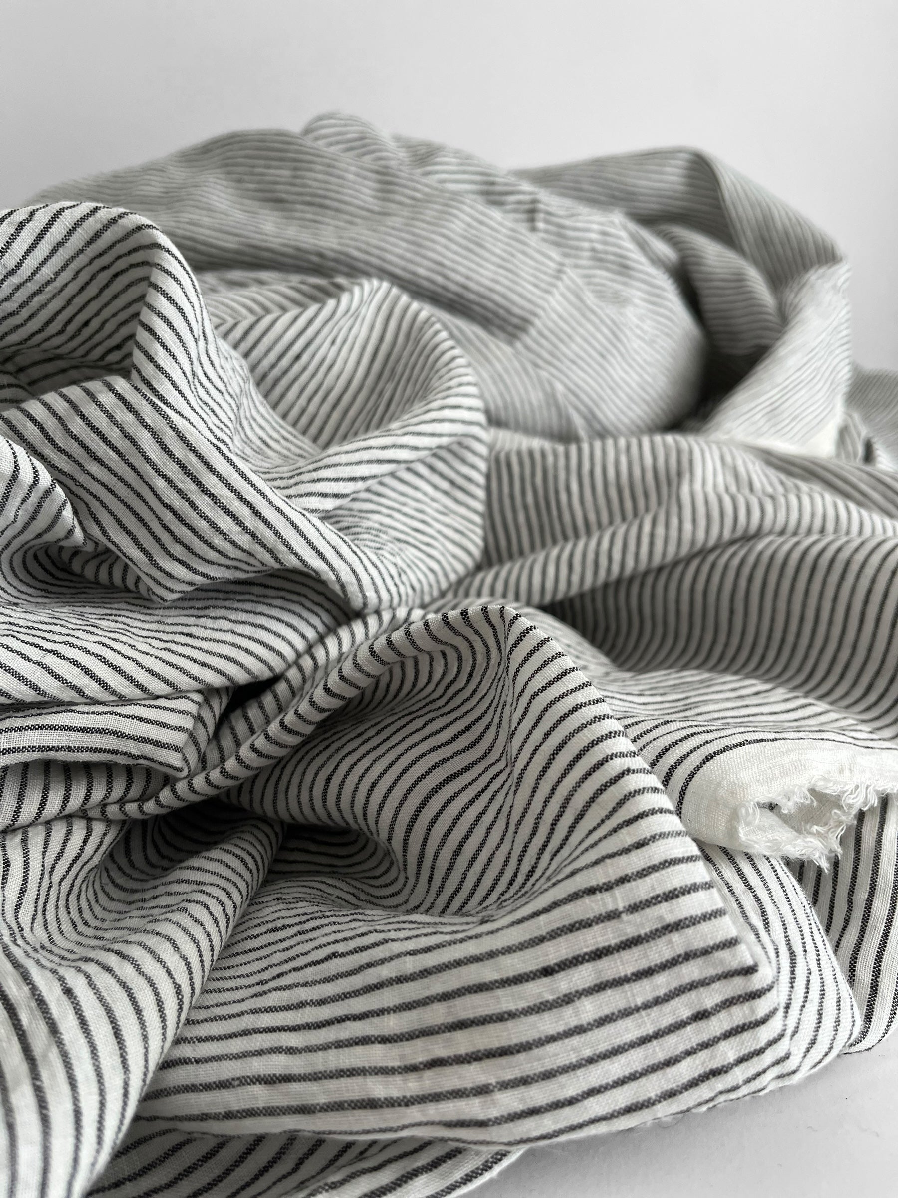Pure yarn dyed linen, stonewashed at the mill giving it softness and a relaxed worn-in look.