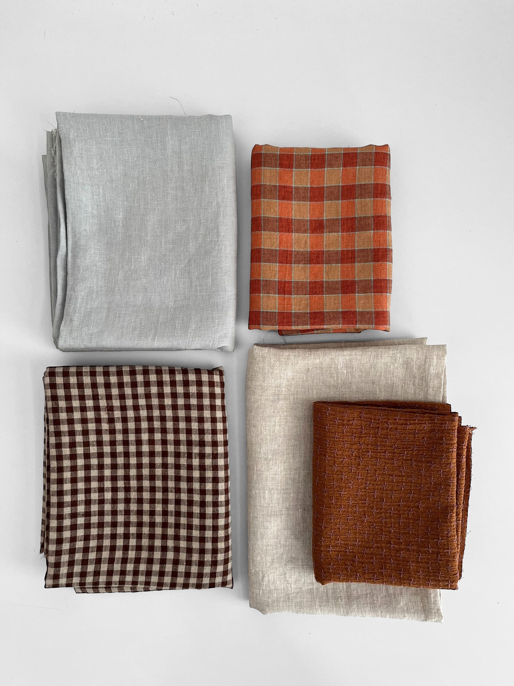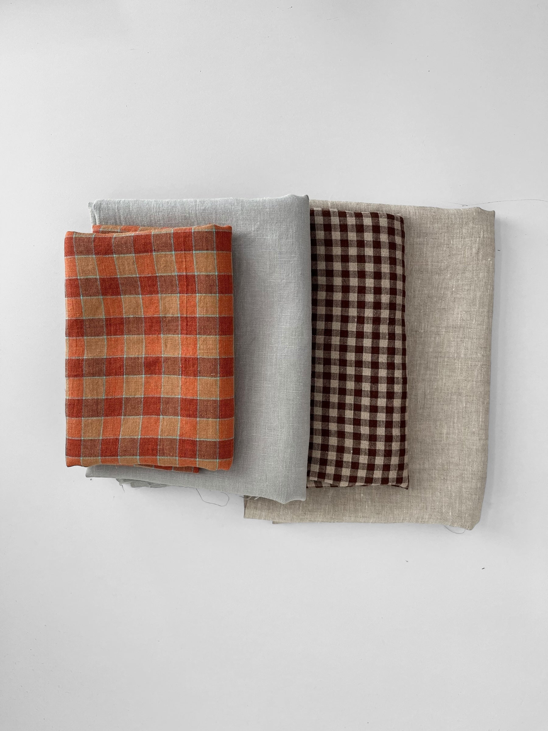 Espresso Gingham - 100% Linen, 140gsm, length 85cm, width 140cm